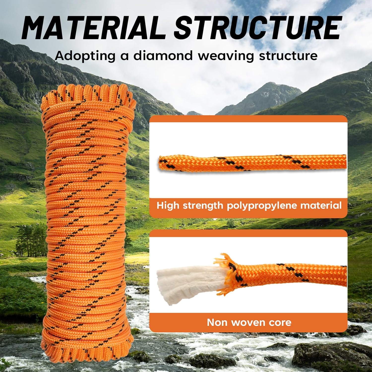Braided design-Our rope adopts diamond braided design, combining high-strength polypropylene material with non-woven fabric inner core, which has high wear resistance and tensile resistance, solving the wear problem for you