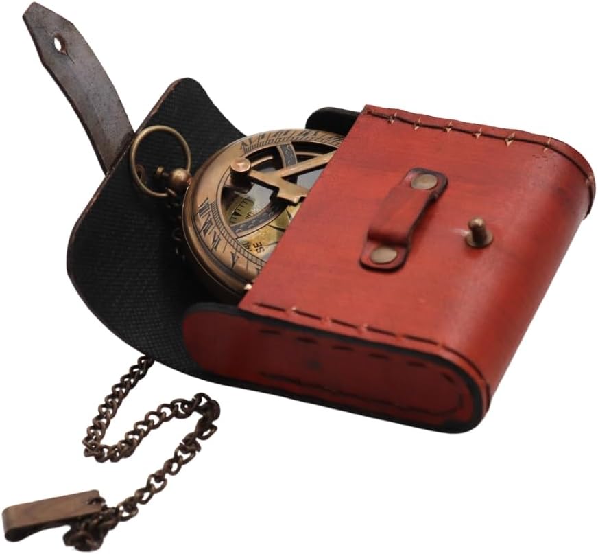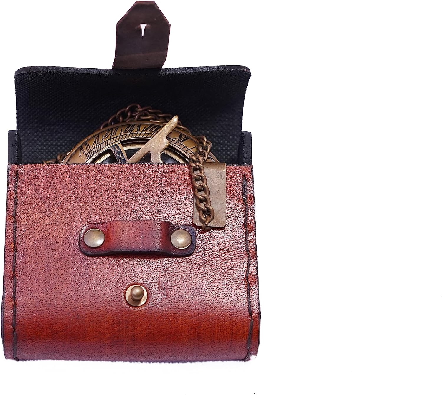 Vintage Sundial Compass with Leather Case – Unique Gift Ideas for Husband or Wife – Anniversary Sundial Compass Gift for Him or Her