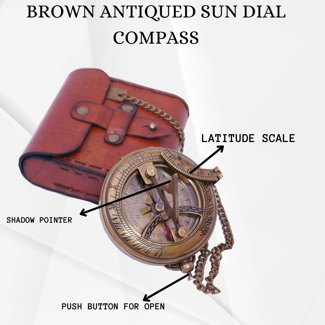 Premium Handmade Brass Sundial Compass: Crafted from high-quality solid brass with a stunning antique finish, this handcrafted sundial compass captures the essence of vintage adventure and nautical heritage — a perfect collectible for history and travel enthusiasts