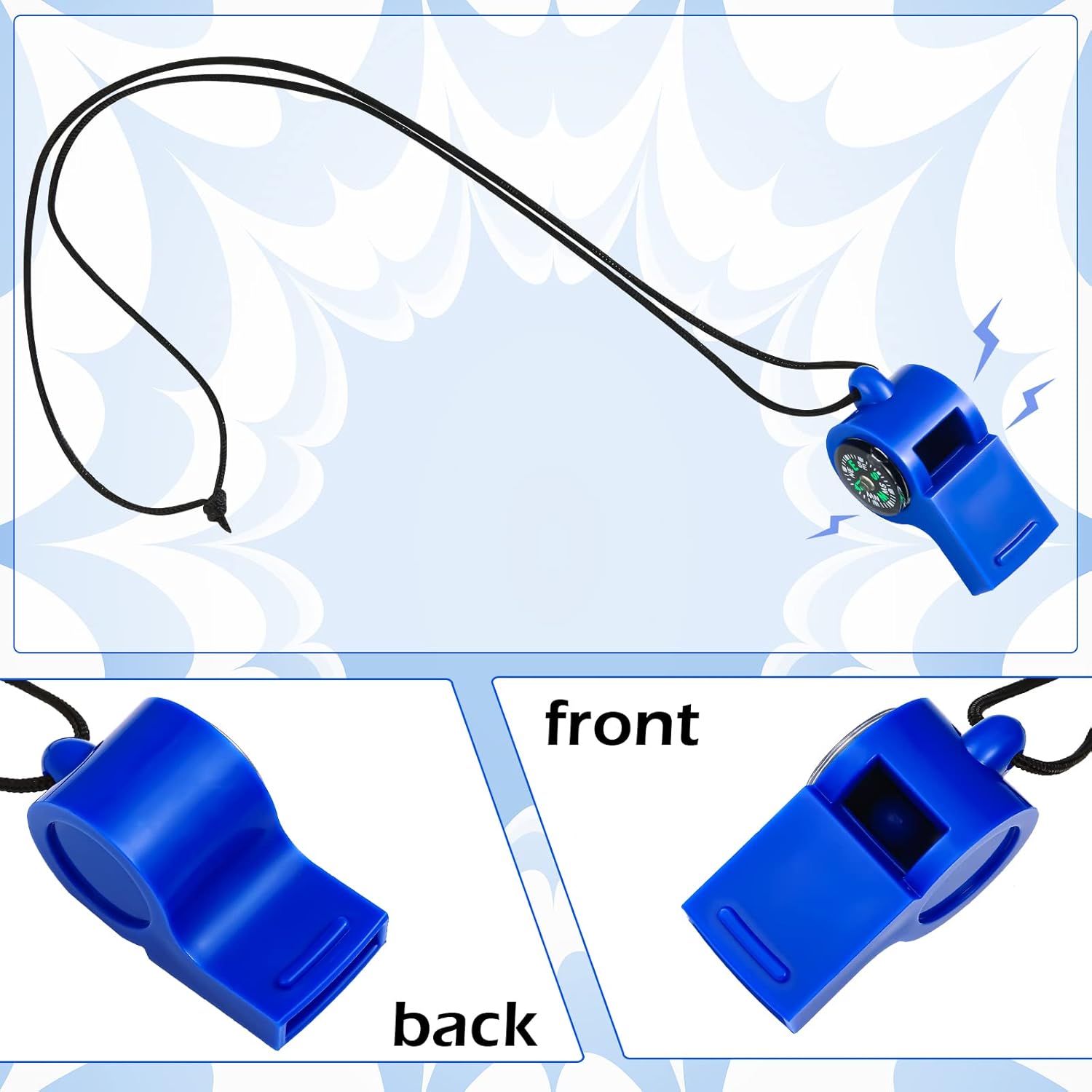 2 in 1 for Practicality: characterized by 2 in 1 function, this compass whistle can act as an emergency whistle and a compass when you do outdoor sports; Coming with a strap, the whistle can be hung on your neck, you can also replace it with the strap you like