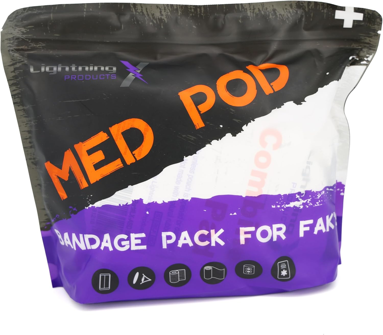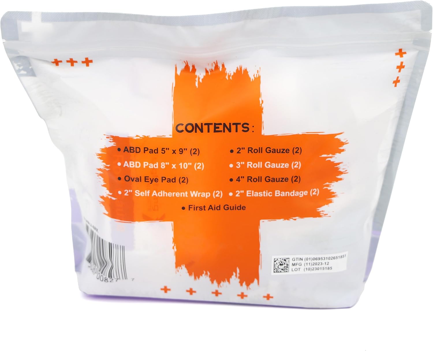 Re-stocking your first aid kit or responder bag with bandages is a hassle when everyone wants you to have to buy an entire box or case lot of each item. That could add up to a lot of money and you’ll likely never use all of it before it expires. We’ve come up with a smart and cost effective solution: An assortment of the most popular bandages and gauze all in one kit. Our kit includes the following items: ABD Trauma Pad 5″ x 9″ (2), ABD Trauma Pad 8″ x 10″ (2), Oval Eye Pad (2), Self-Adherent Bandage 2″ x 4.1yd (2), Elastic ACE Bandage w/ Clips 2″ x 4.1yd (2), Conforming Stretch Rolled Gauze 2″ x 4.1yd (2), Conforming Stretch Rolled Gauze 3″ x 4.1yd (2), Conforming Stretch Rolled Gauze 4″ x 4.1yd (2), First Aid Guide Book. All items are individually wrapped and sterile if indicated, heat sealed together in one convenient bag. Inventory is regularly turned so expiration dates are years out.