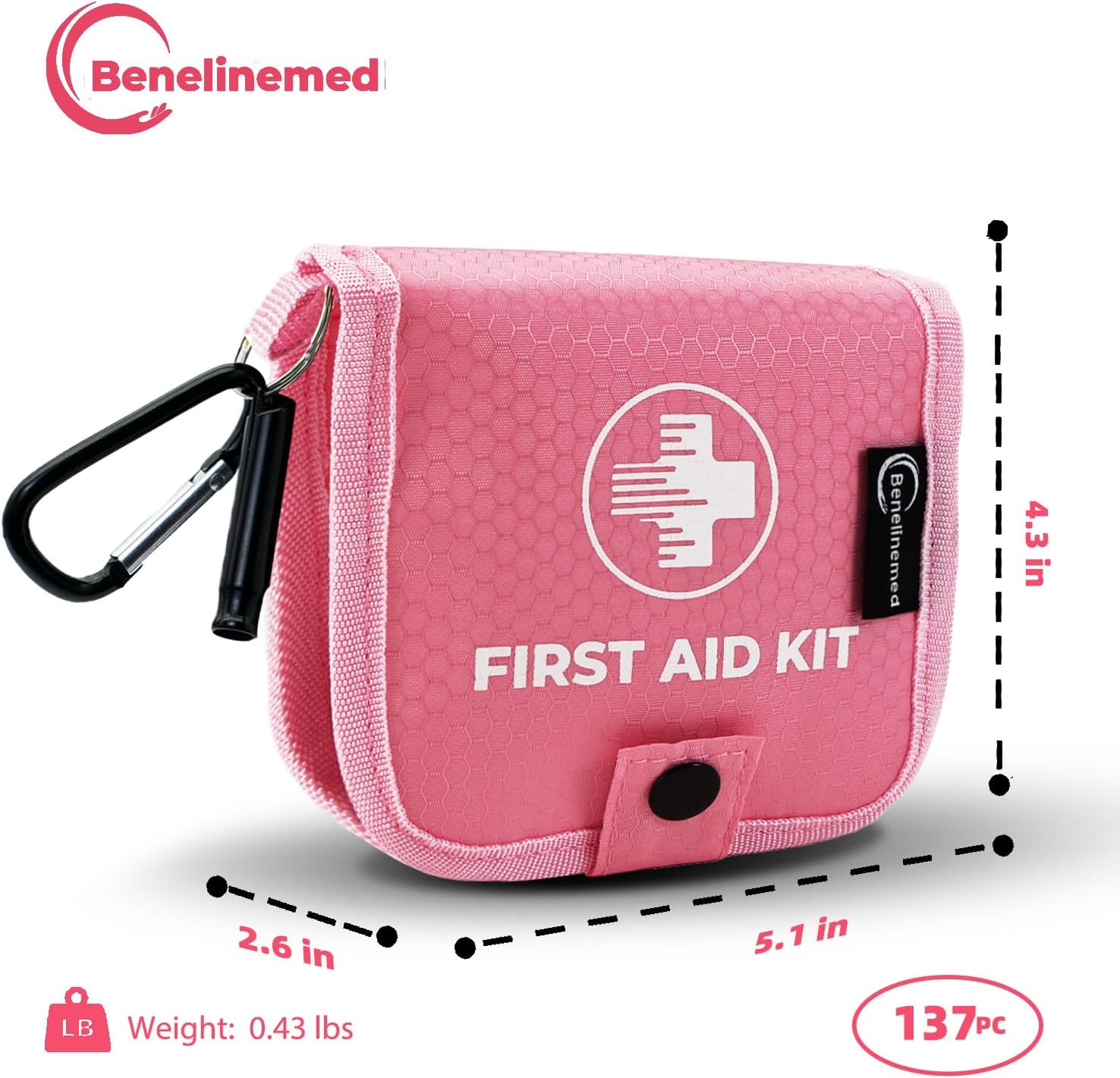 COMPACT & LIGHTWEIGHT: Weighing only 0.43 pounds and equipped with a sturdy carabiner, this small first aid kit seamlessly integrates into your daily carry. Whether placed in a pocket, backpack, or handbag, it remains unobtrusive, ensuring convenient portability