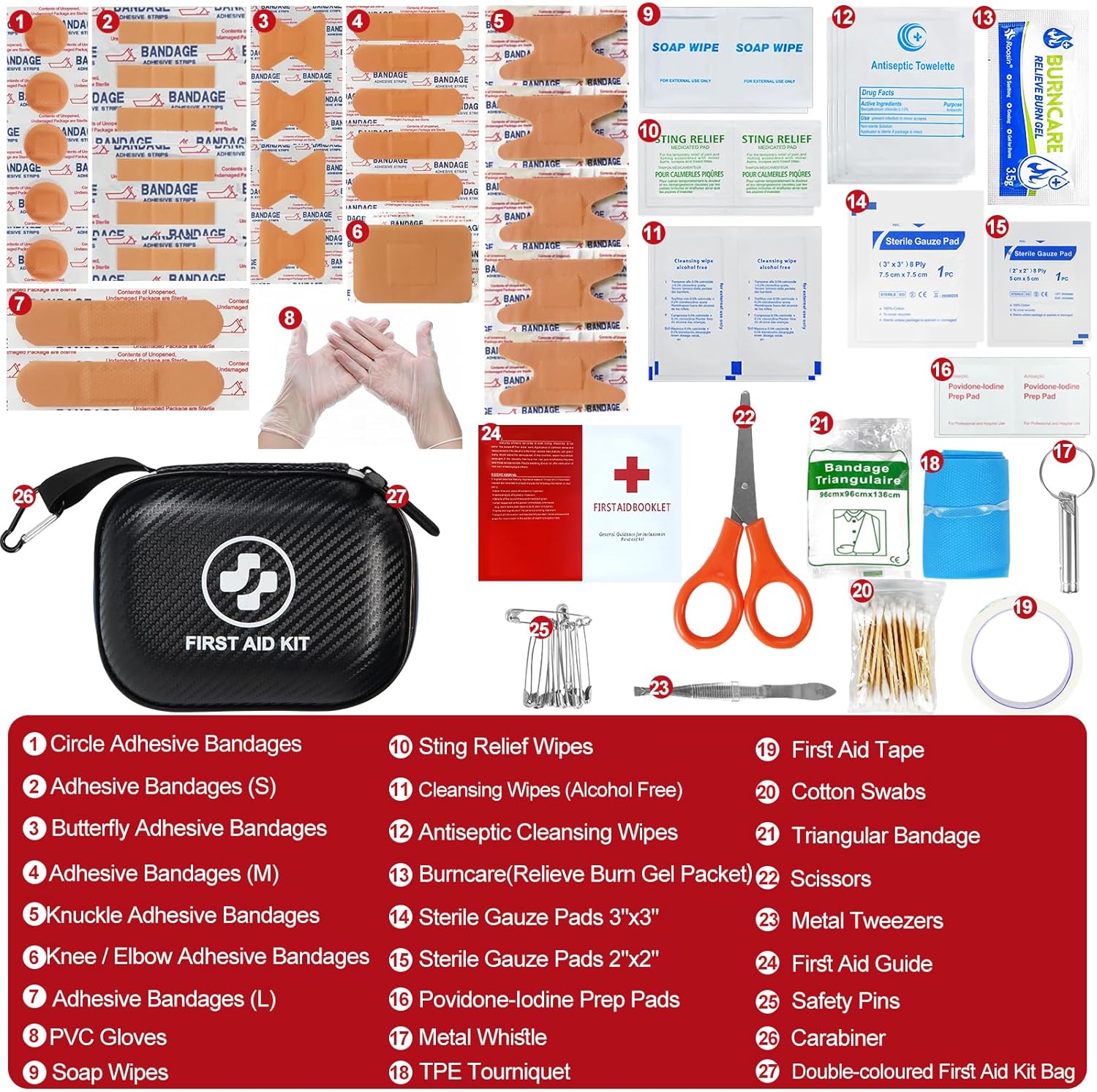 COMPLETE EMERGENCY SOLUTION: This comprehensive first aid kit contains 185 premium emergency supplies, including bandages, scissors, tweezers, and gauze pads, ensuring you’re prepared for an emergency at home or outdoors.