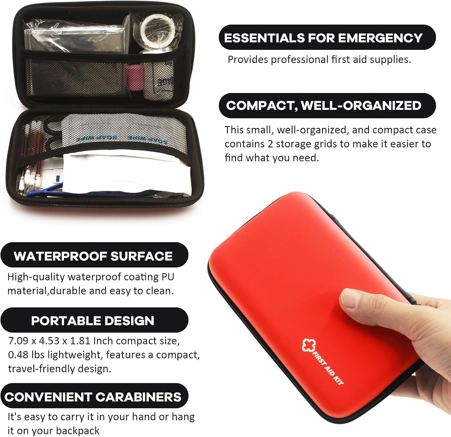 ULTRA-PORTABLE TRAVEL-FRIENDLY DESIGN: Measures 7.09 x 4.53 x 1.81 Inch and weighs only 0.48 Ib with premium zippers and waterproof coating PU material,making it perfect for outdoor adventures or on-the-go emergency preparedness.