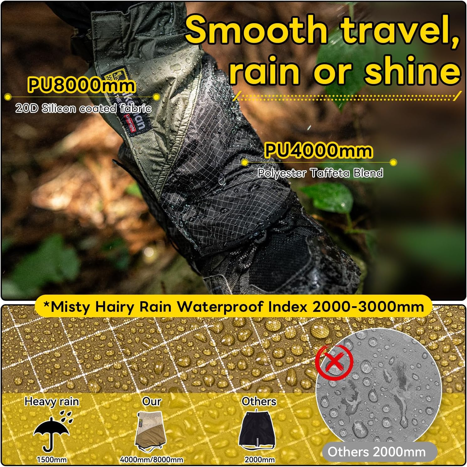 【Portable & Compact】Come with a compact storage bag for outdoor backpacking,very lightweight and compact.Keep your backpack clean and organized