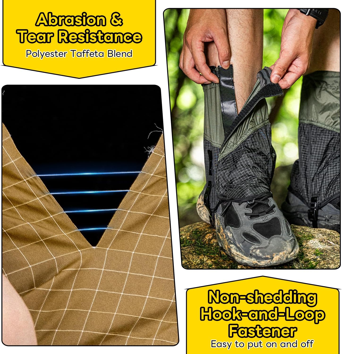 These short gaiters are effortless to put on and take off. Crafted from ultra-durable UHMWPE fabric, they’re not only lightweight but also abrasion- and tear-resistant.Multiple reinforced designs prevent it from slipping off during use, making it suitable for a variety of leg circumferences.