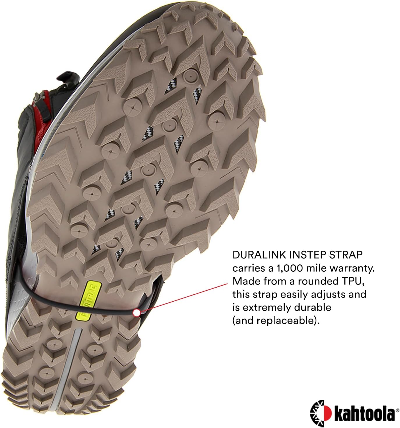 DURABLE INSTEP STRAP: The DuraLink instep strap design offers easily adjustable symmetrical pull tabs and a rounded profile that fits neatly between the tread of your footwear and carries a 1000-mile warranty to ensure it stands up to the harshest terrain.