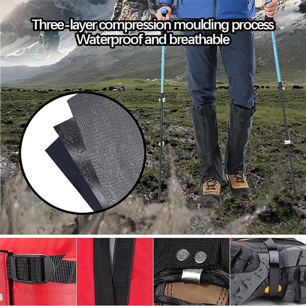 【Thoughtful upgrade design】Our enhanced waterproof zipper leg gaiter not only ensures cleanliness but also enhances longevity. The strengthened eco-friendly TPU instep straps offer exceptional resistance against abrasions and remain unbreakable even on ice and rocks, easily adjusting to fit your shoe sole. No more worrying about your leg gaiters slip off during walking. An adjustable drawstring closure is designed at the top of the leg gaiters to ensure a perfect fit without slipping.