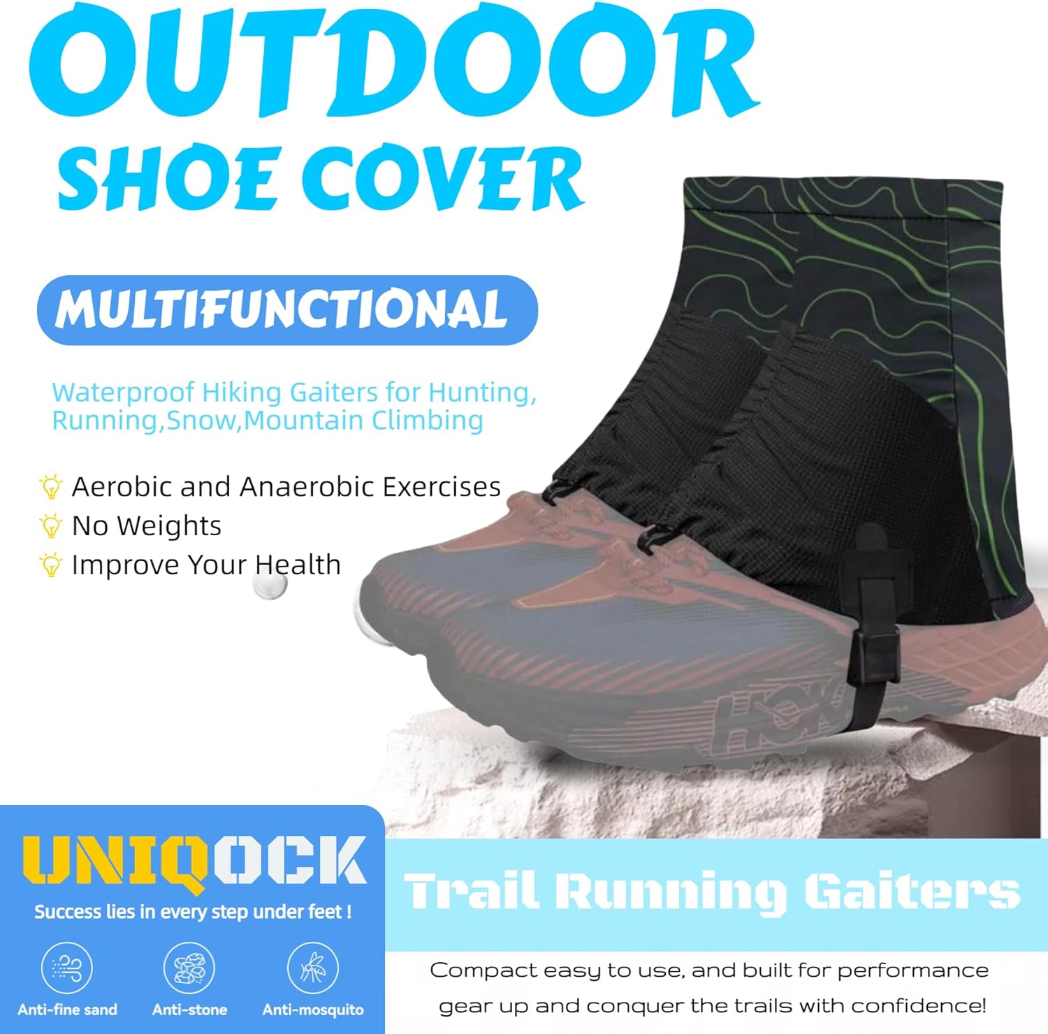 Dustproof,waterproof and sandproof: The gaiters are made of high-density waterproof Oxford cloth,which can completely wrap the shoes,effectively block the penetration of snow, rain and mud, avoid discomfort caused by moisture, extend the service life of the shoes, and always keep your feet dry and comfortable in outdoor areas, and prevent sand and debris from entering the shoes.