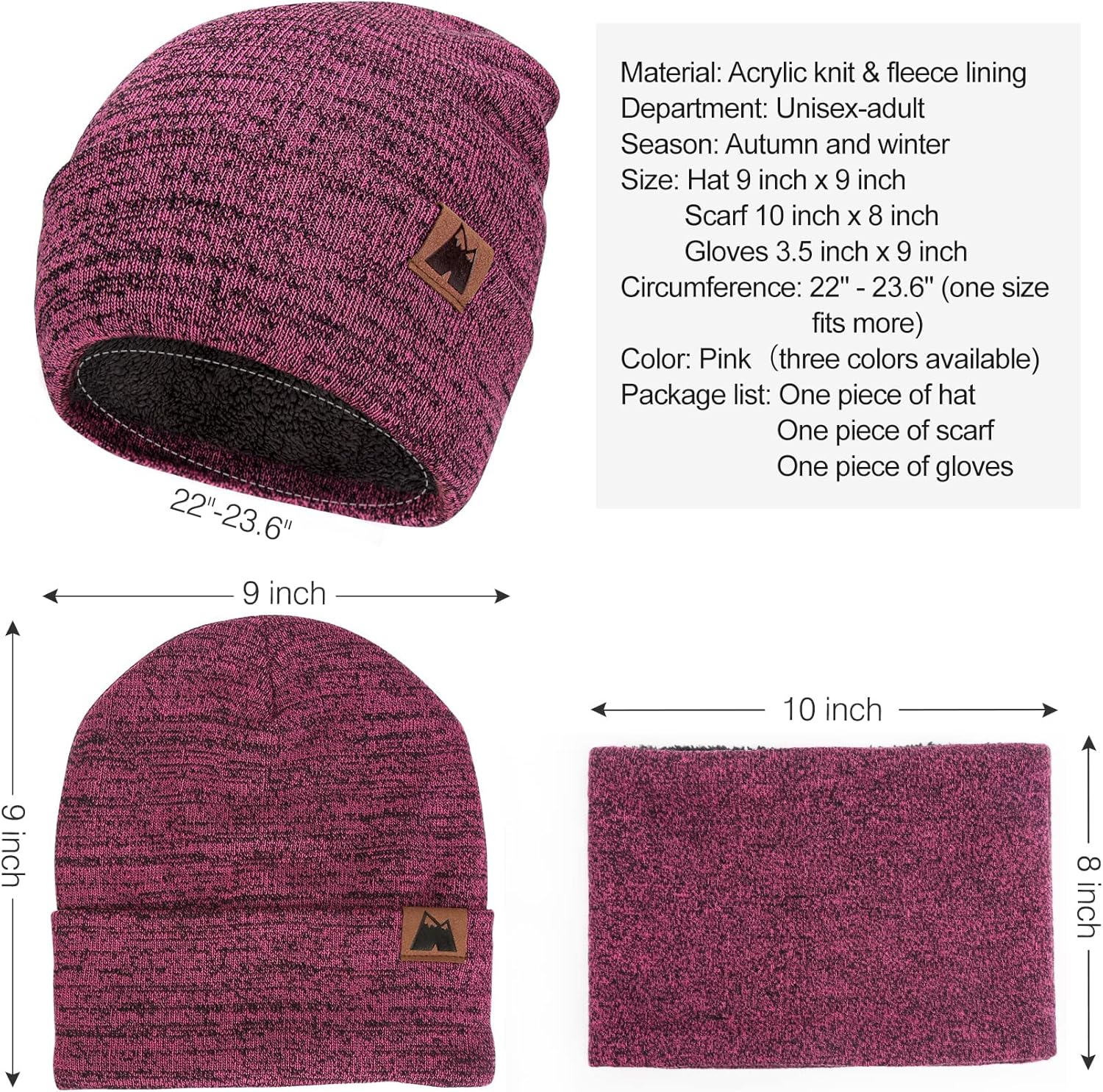 ✔Intimate warmth for winter weather and screetouch friendly – mysuntown three-piece winter wear set is designed with warm thick fabrics to keep you cozy on the coldest of days.This winter hat, gloves and scarf set completely covers your head and your neck for the tough outside or inside cold. In addition, mysuntown gloves are sensitive to the screentouch, making easier the daily-life use of your devices. ✔Fleece lined for Warmth and Comfort- The winter hat, scarf and gloves set features a soft thick knit outer layer, the beanie hat and scarf are lined with high quality fleece to keep out wind and chill! ✔Durable and versatile for outdoor enthusiasts – Thick and durable winter wear make activities much funnier and comfortable, so this great beanie and gloves set for women is completely suitable for cycling, skiing, snowboarding, running, camping, traveling, fishing, hiking, motorcycling or other outdoor activities. ✔Available for men and women – This attractive hat and scarf set for women comes in three colors: black, grey and pink, with sizing that stretches and works for both genders. Great as a present for women, men, boys, girls, family and all friends. ✔Perfect gift for the holiday season – This beanie hat three-piece set is a great gift for any loved one in your life, its suiable for different ocassions and family festivals such as Christmas, Thanksgiving, New Year, family day, birthdays, Mother’s day gift, Father’s day gift.