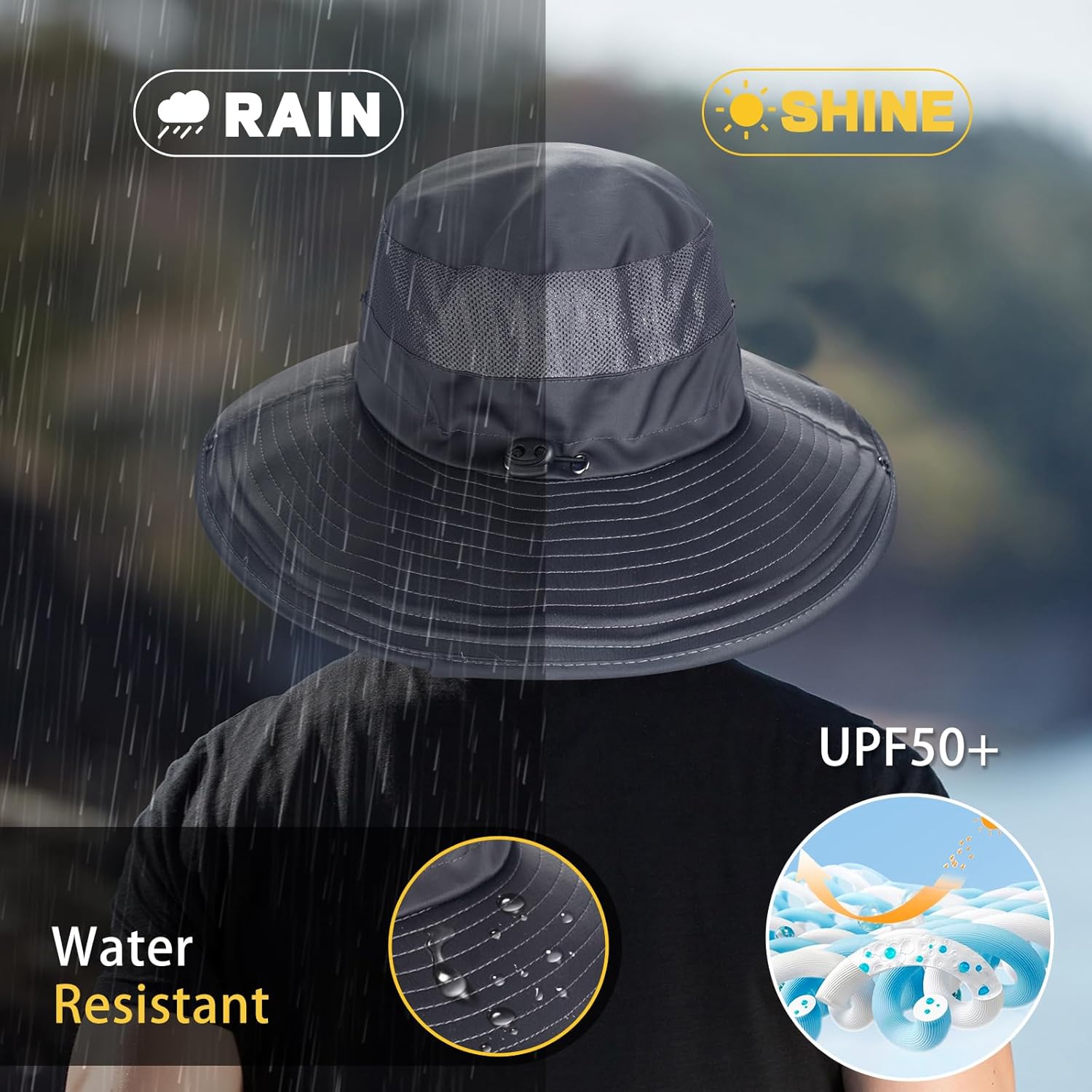 Customers find this sun hat well-made and appreciate its wide brim that keeps the sun off their head. The hat is comfortable, easy to adjust, and fits larger heads well, while being lightweight and offering good value. They like its weather resistance, with one customer noting its effectiveness in humid summertime conditions.