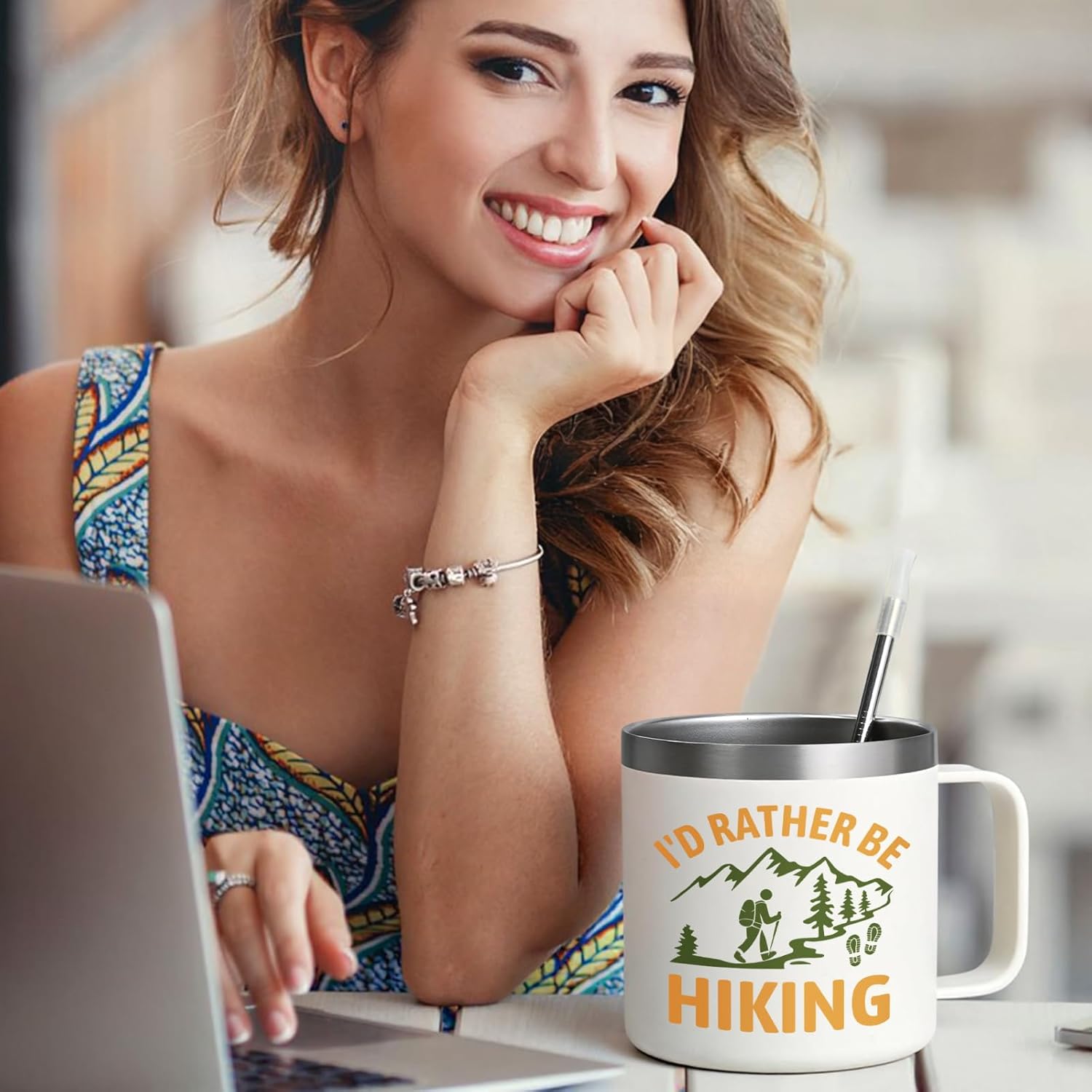 Package Included: To enhance your enjoyment of favorite beverages and to express your appreciation for hikers, our hiking gift for women 14oz insulated coffee mug comes with a complete set of accessories. Each coffee mug includes 1 lid, 1 stainless steel straw, 1 straw brush, 1cup brush, and 1 beautiful box for your convenience