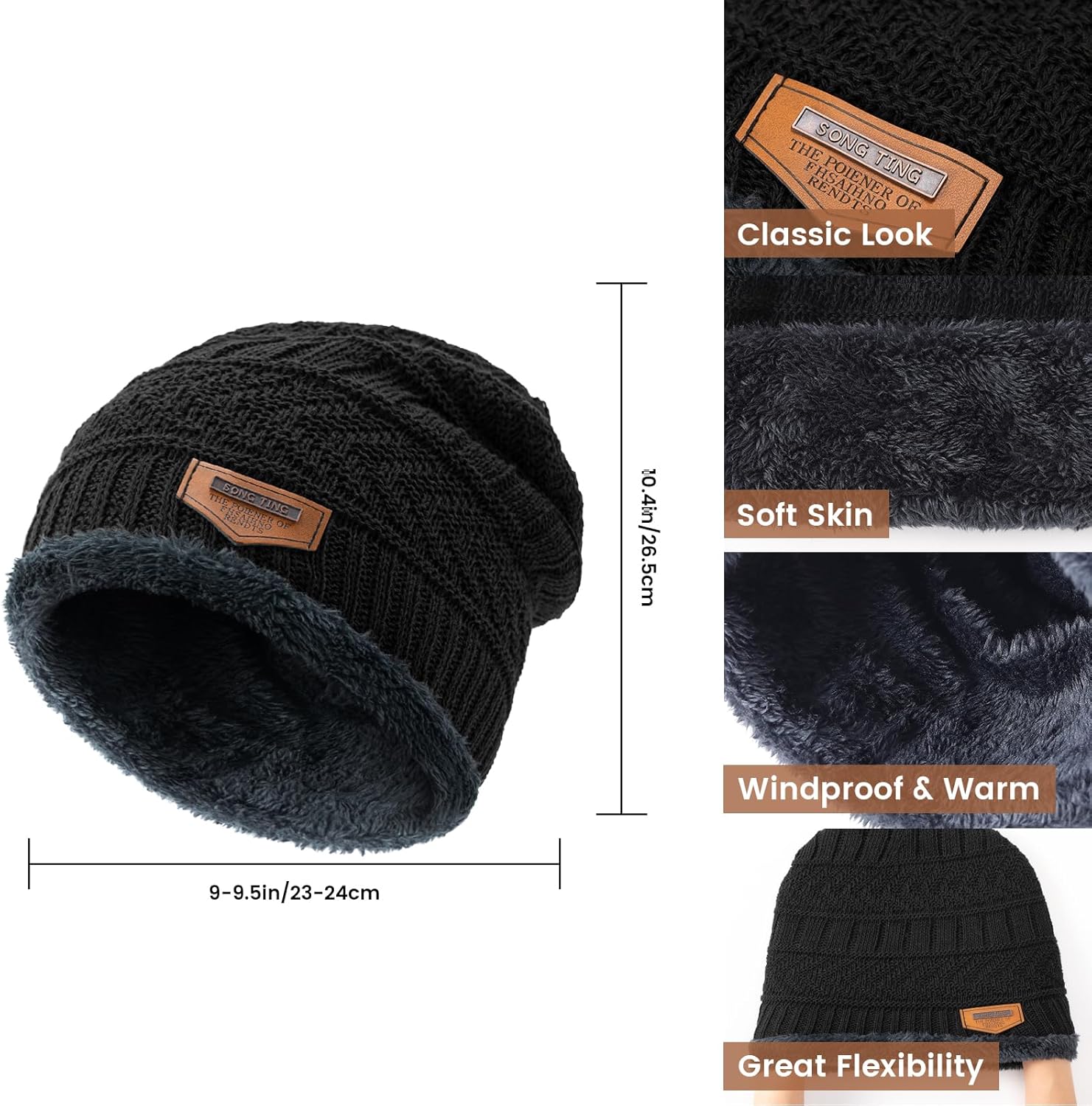Winter Hat Beanie Scarf Touchscreen Gloves Set for Men and Women, Skull Cap Gloves Neck Warmer Set with Warm Knit Fleece Lined