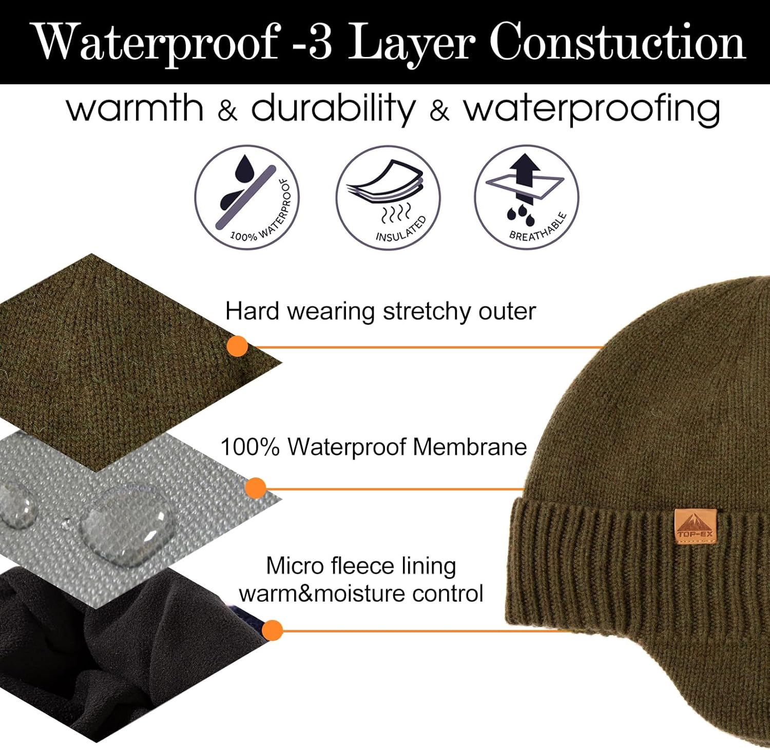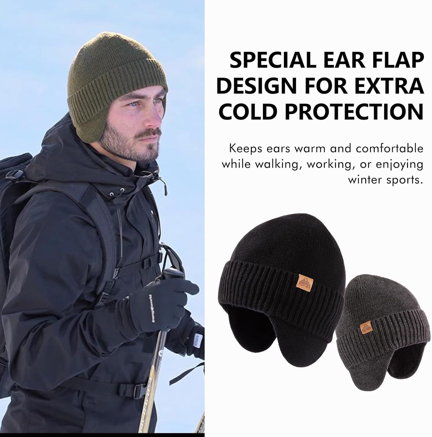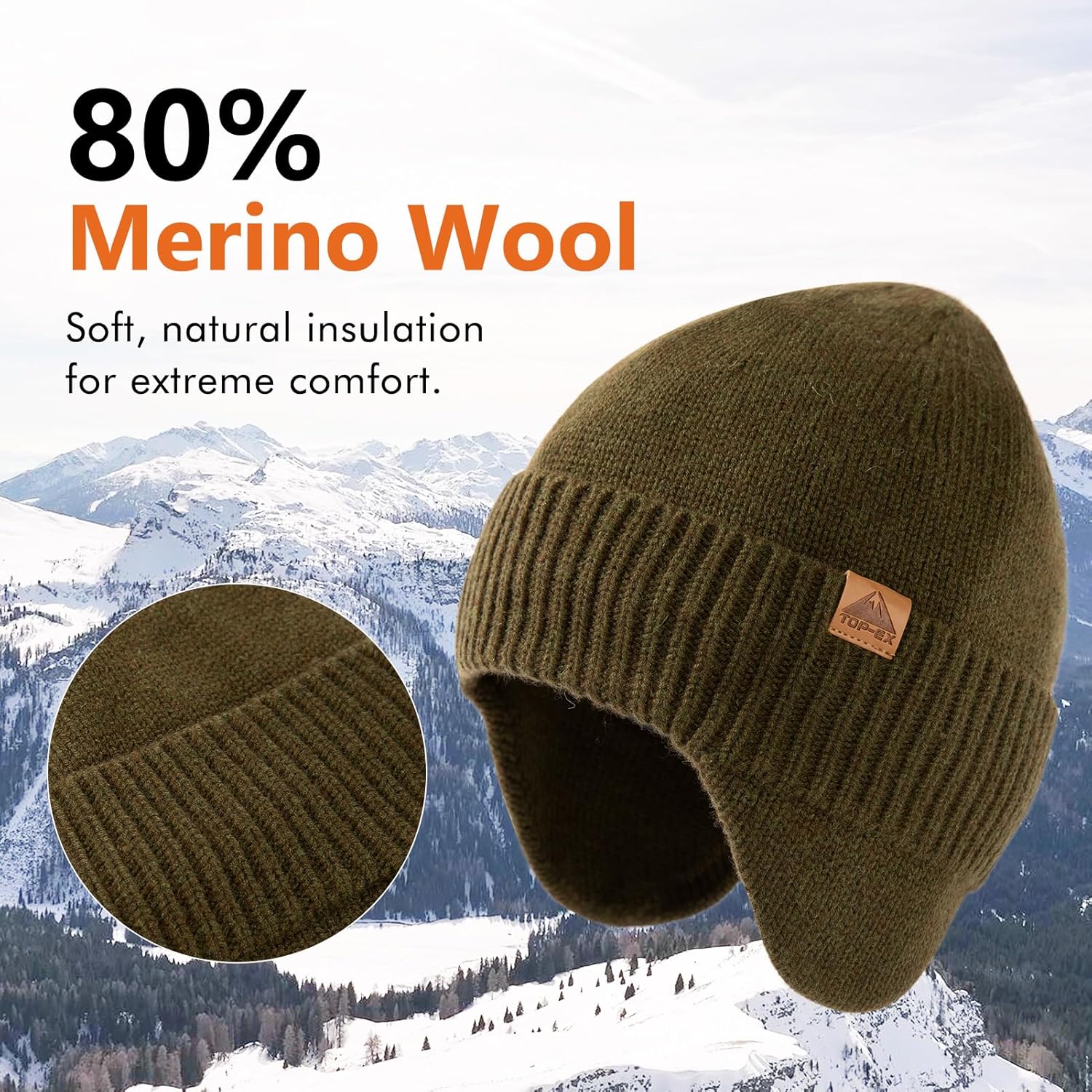 Introducing our 80% merino wool winter beanie with ear flaps, designed for ultimate warmth and protection in extreme weather conditions. Available in sizes M/L (56-59cm) and XL/XXL (60-63cm), this beanie features a cozy fleece lining for added insulation, ensuring maximum comfort during harsh winter activities. Its waterproof and windproof construction provides reliable defense against the elements, making it ideal for hunting, skiing, and hiking. The ear flaps offer full coverage, keeping your ears warm and protected from cold winds, making this beanie the perfect companion for your outdoor adventures.