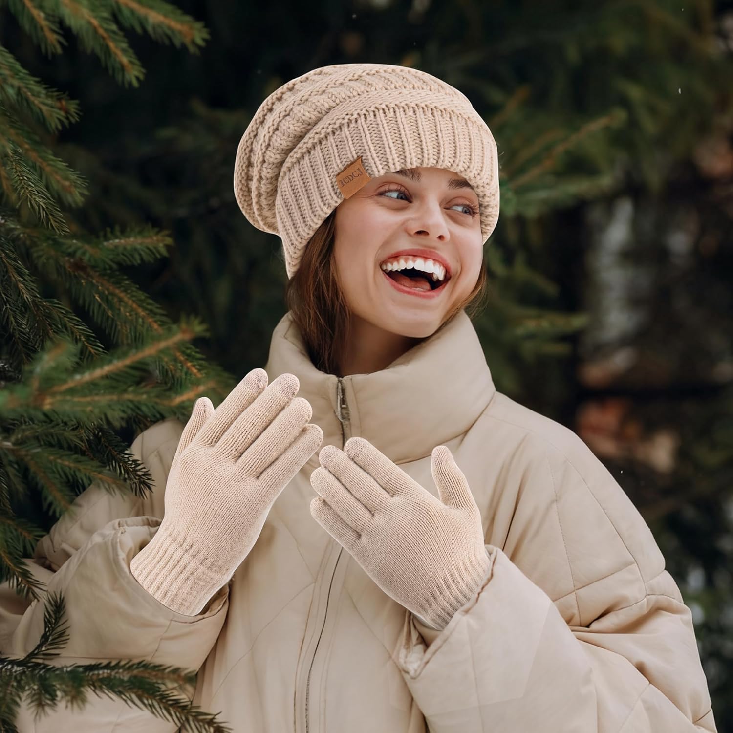 Customers find the beanie hat and gloves set to be of great quality, soft, and cute, with good value for money. They describe it as warm, comfortable, and durable, with one customer noting that the gloves’ fingertips work well for phone use.