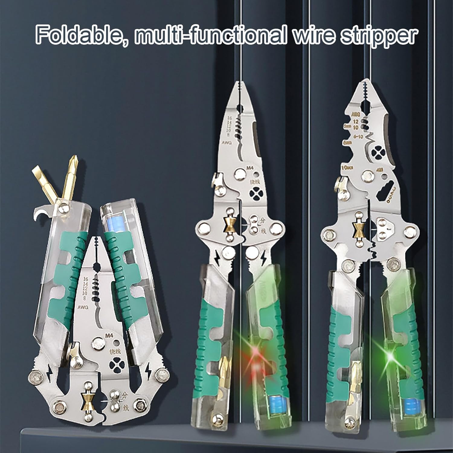 VERSATILE DESIGN: 20-in-1 multi-tool combines pliers, wire stripper, and folding screwdriver functionalities in one compact tool for various electrical tasks