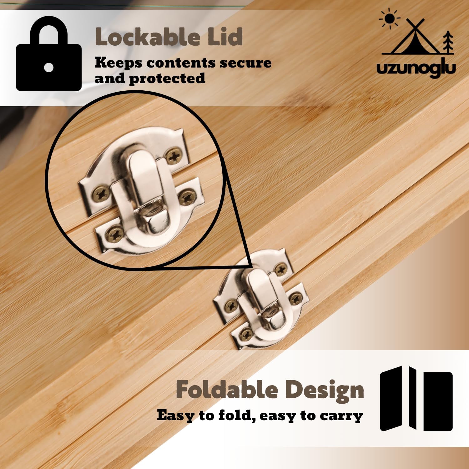 🎁 STYLISH & MULTI-PURPOSE GIFT IDEA: Natural bamboo texture doubles as a serving board, making it a practical and elegant gift for campers, travelers, and cooking enthusiasts.