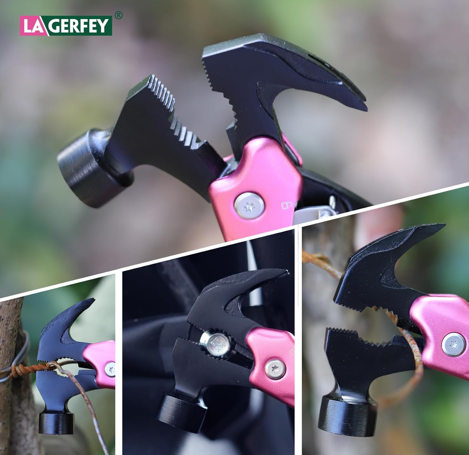 It is equipped with a nail care file, a sturdy claw hammer for outdoor needs, sharp blades and serrated knives for cutting, a screwdriver for DIY projects, and pliers for gripping and cutting. Its sleek and practical design makes it an ideal companion for various tasks.