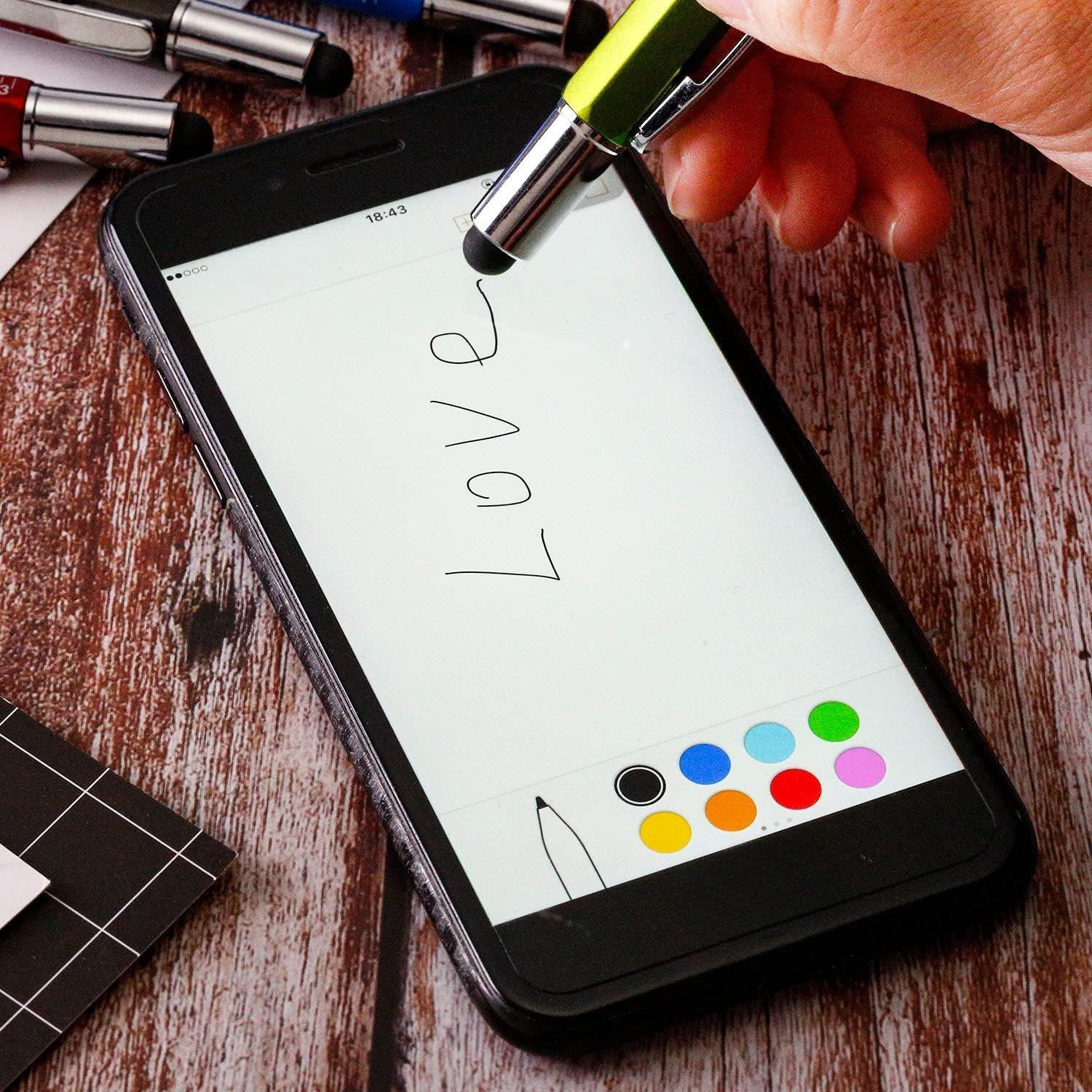 The tech tool pen comes with 6 very handy functions, a stylus with refill, levelgauge, ruler, slot and screwdriver, touch screen stylus write smoothly