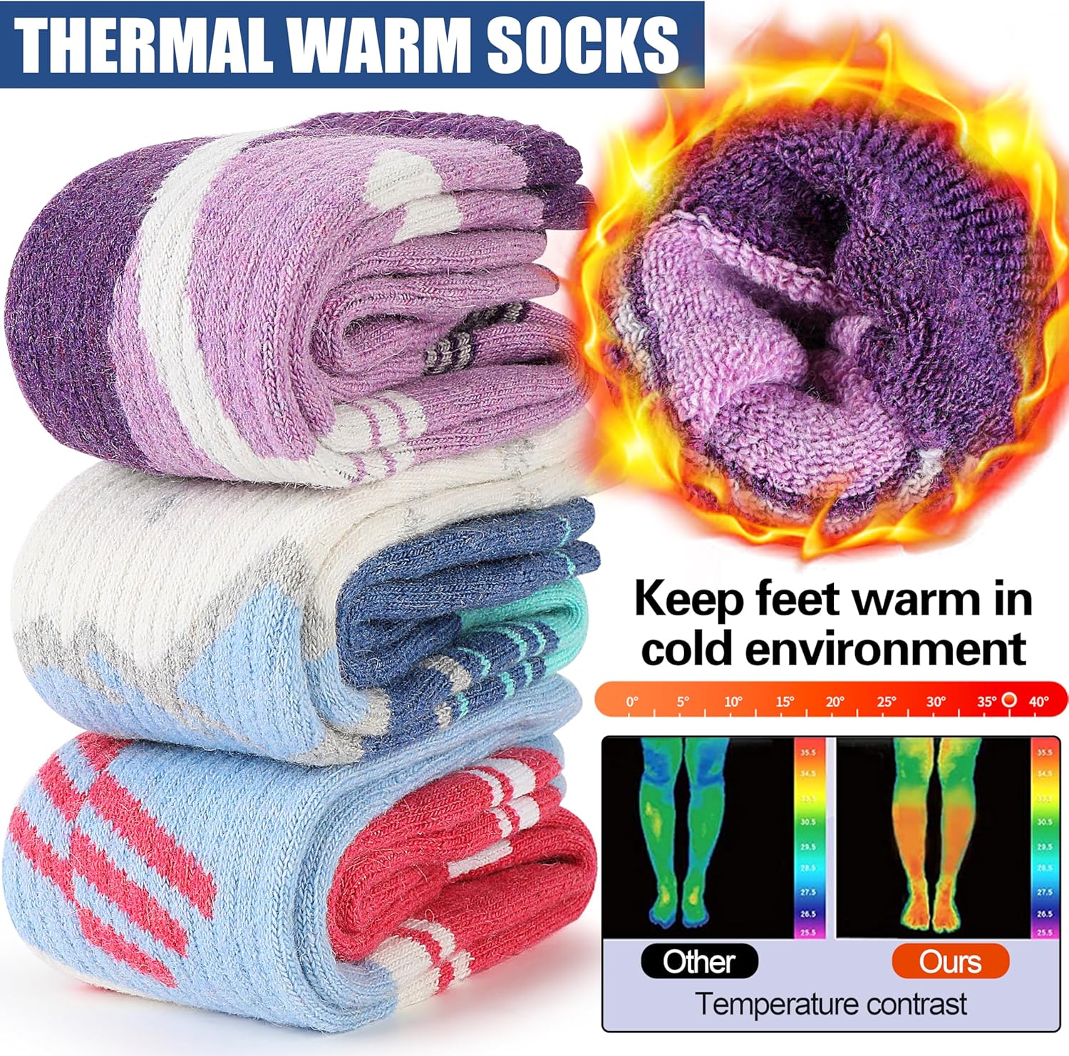 Customers find these ski socks excellent for outdoor activities in cold climates, with good insulation and fit that accommodates various sizes. They are comfortable, not itchy, and customers appreciate their softness, with one noting they maintain their softness after washing. Customers like the color variety and find them pretty, with one mentioning they go all the way to the knees.