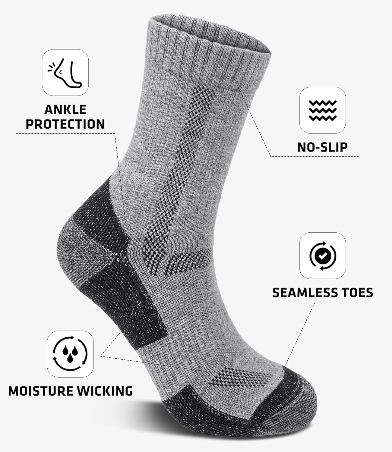 Our wool socks are made from high-quality Merino wool, offering excellent warmth and breathability. They are suitable for autumn and winter wear, and can also be worn in spring or indoors to keep feet warm without feeling stuffy.