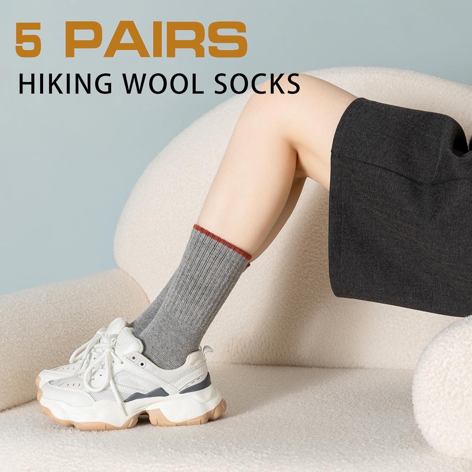 5 Pairs Merino Wool Hiking Socks for Women Men – Thermal Warm Crew Winter Wool Socks for Women