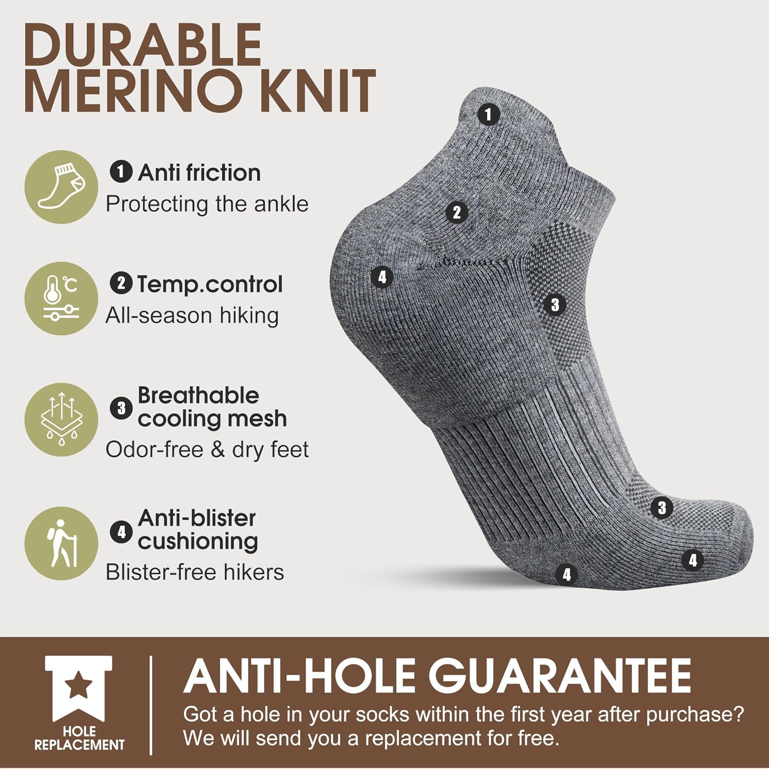 With years of expertise in the outdoor industry, we have carefully selected the finest materials to manufacture these hiking socks.