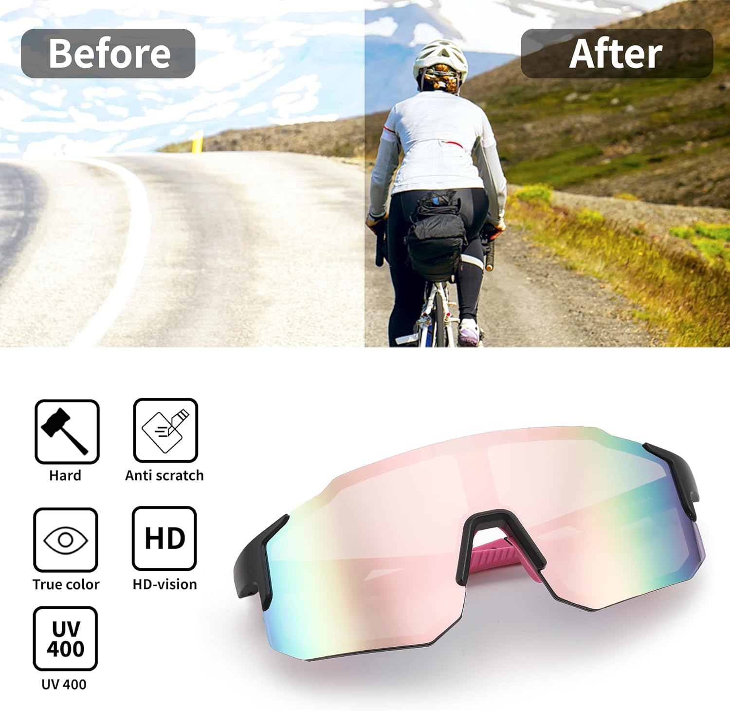 [Wide Application] The bicycle sunglasses for men and women can be used for various outdoor sports such as cycling, running, fishing, golf and much more. Suitable for different weather conditions. A variety of mirrored gradient lenses are available. Color your sports life.