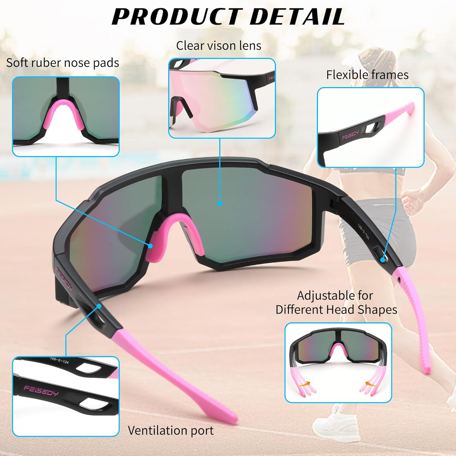 [Perfect Fit] The silicone nose bars ensure that the cycling goggles are comfortable and without pressure. The flexible and stable temples ensure that the running glasses adapt well to wide and narrow heads. PC glasses, shatterproof and durable in use. Feisedy Sport Sunglasses give you a high experience on cycling.