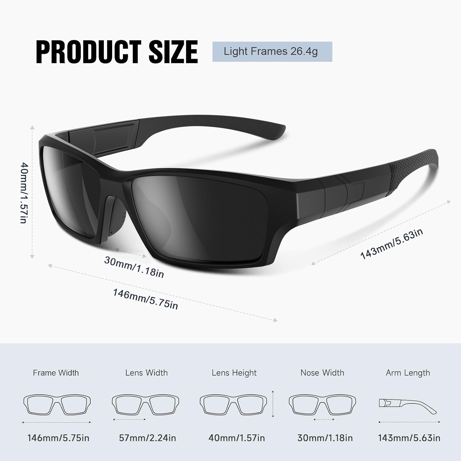 Vcarsian high-performance mens sunglasses polarized are designed to provide superior protection and clarity for any activities. Featuring UV400 coating, these black sunglasses block harmful UVA/UVB rays while eliminating glare. Keeping your eyes safe and comfortable in even the brightest conditions. The HD polarized lenses provide true color clarity, impact resistance, and scratch-proof durability—perfect for running, cycling, fishing, hiking and driving. Built for active lifestyles, these sport sunglasses feature a resilient frame that adapts to all head shapes. The ergonomic, non-slip design ensures a secure fit during movement, while the ultra-lightweight 26.4g construction offers all-day comfort. Combining function and style, these sunglasses for men come in multiple lens colors to match any sportswear or casual outfit. The perfect blend of durability, comfort, and performance—ideal for athletes and outdoor enthusiasts. Upgrade your gear today!