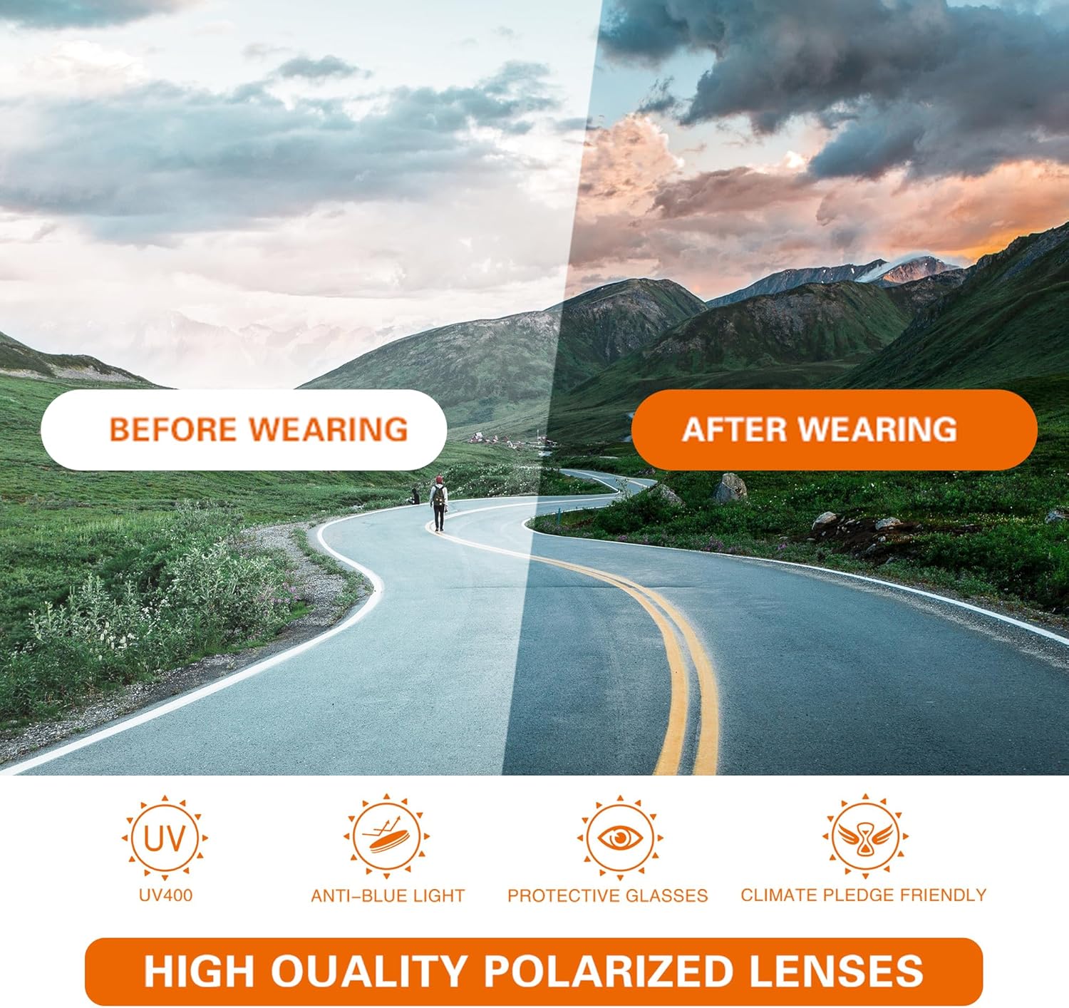 Customers find these sunglasses well-made and comfortable, with lenses that are very clear and offer good polarization. They fit large heads well and provide excellent sun protection, with one customer noting that the sun doesn’t hit from the sides. Customers appreciate the sleek style and consider them good value for money.