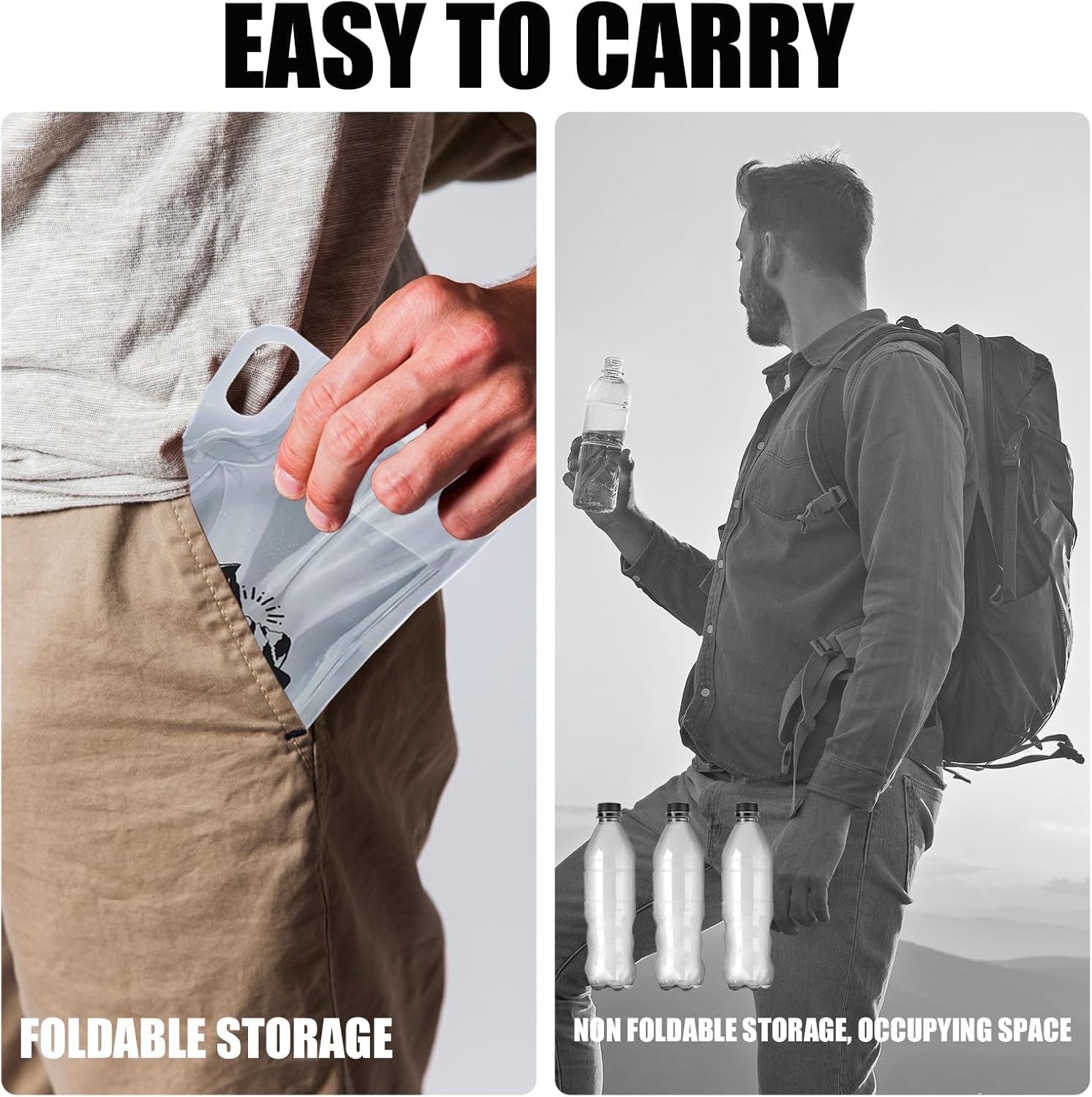 Hiking Water Bottle: 5-piece water bottle set, each with a capacity of 1L (33OZ), with a 28mm thread on the bottle mouth that can be connected to any portable water filter. The foldable water bottle can be used multiple times, and its lightweight size and volume are very suitable for various outdoor scenarios such as outdoor travel, camping, hiking, and mountaineering