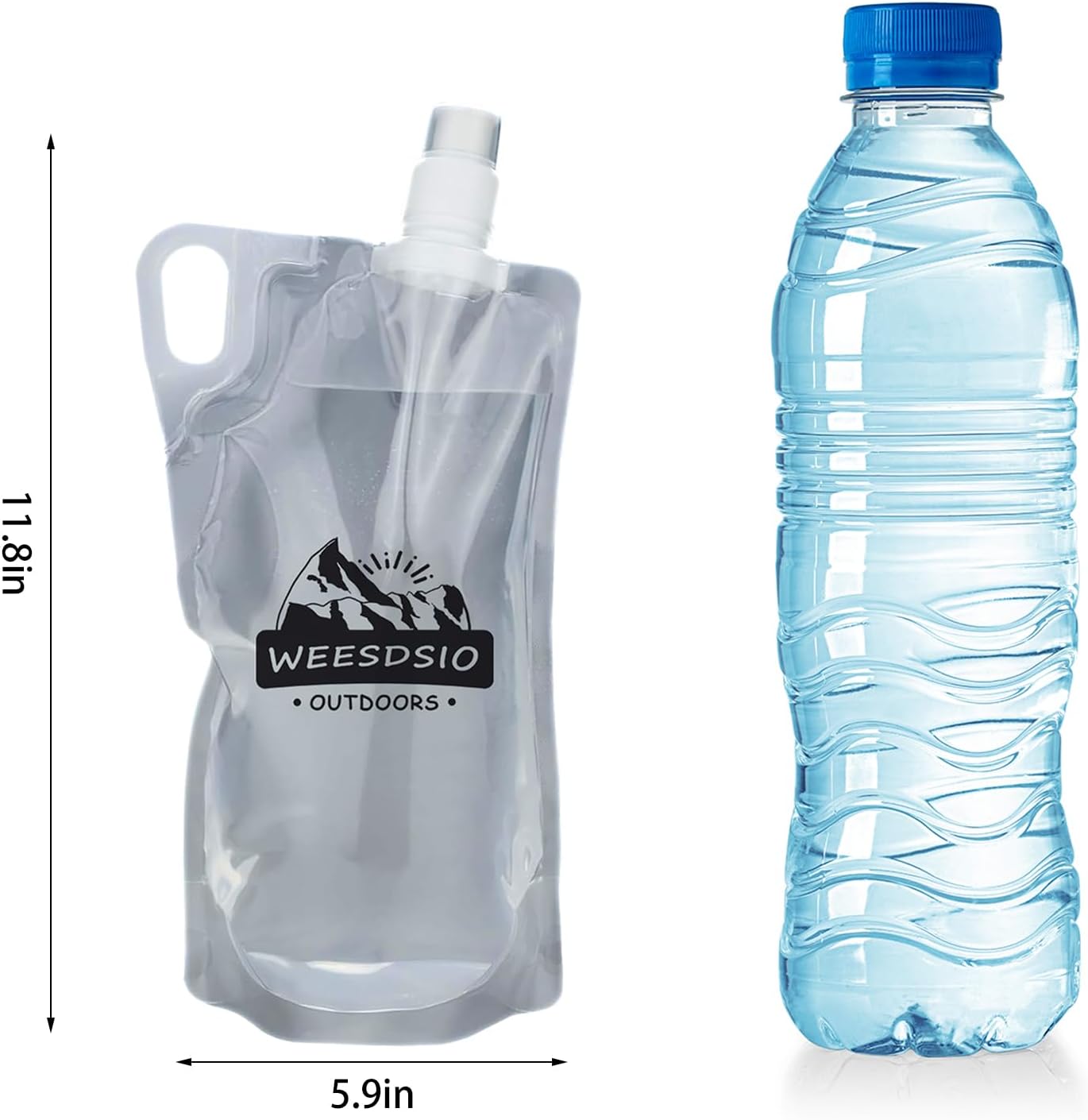Hiking Water Bottle: 5-piece water bottle set, each with a capacity of 1L (33OZ), with a 28mm thread on the bottle mouth that can be connected to any portable water filter. The foldable water bottle can be used multiple times, and its lightweight size and volume are very suitable for various outdoor scenarios such as outdoor travel, camping, hiking, and mountaineering