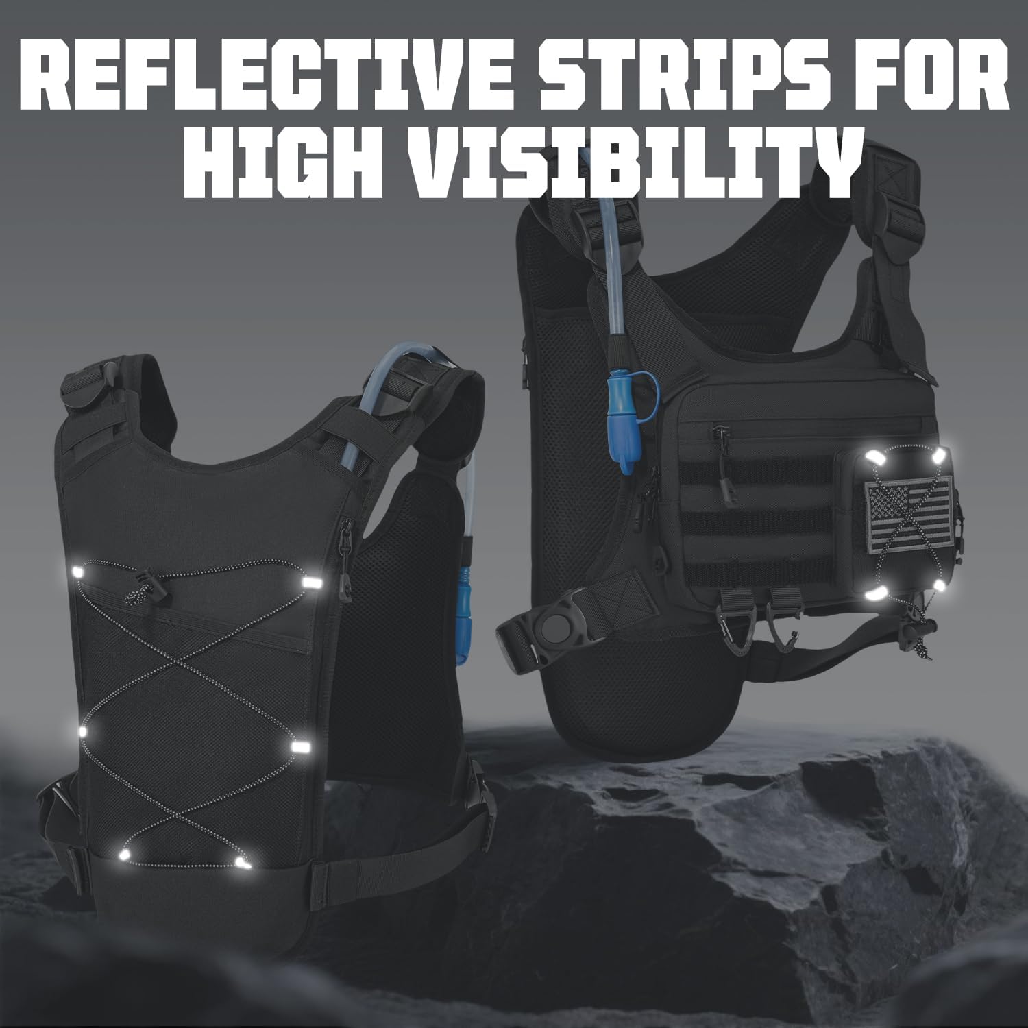【Water Bladder System】The hydration chest bag equipped with a dedicated 2.0L water bladder, the high quality hydration bladder is made of PEVA material and it is BPA-free. The hydration bladder guarantees that you have a constant supply of water on your journeys. The ergonomic design ensures easy sips, keeping your thirst quenched on the go.