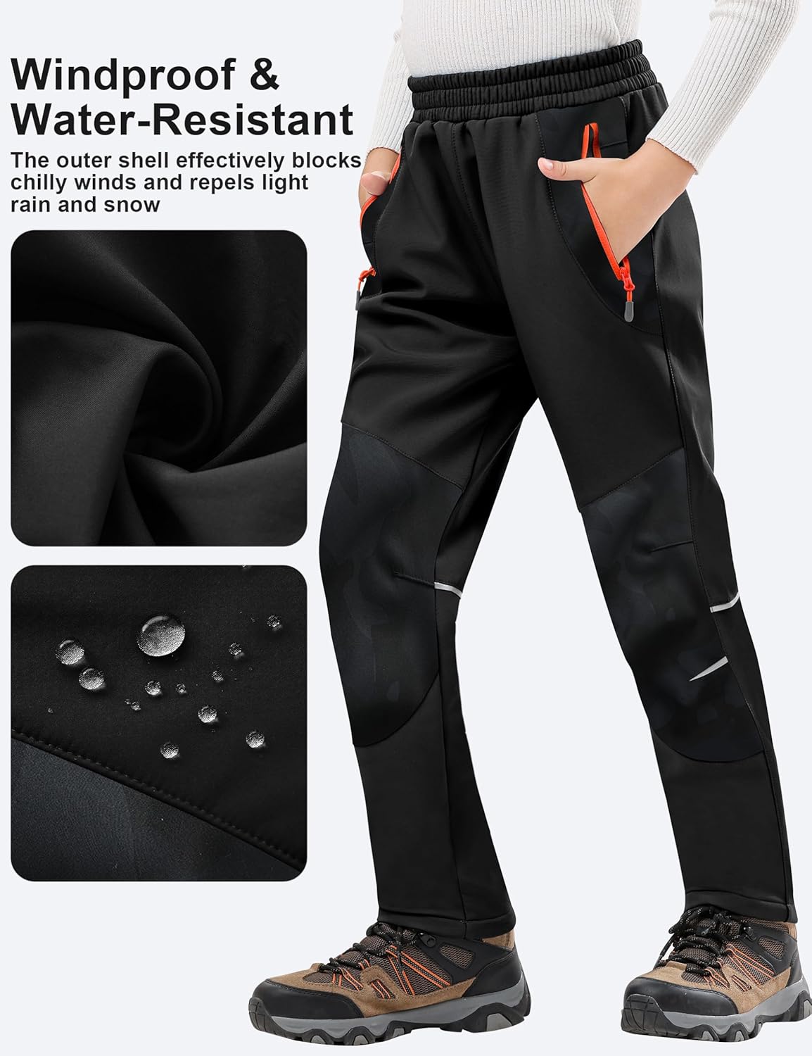 Warm Fleece LiningWaterproof & Windproof Ripstop 3D Tailoring KneesZipper PocketsDetachable Hood