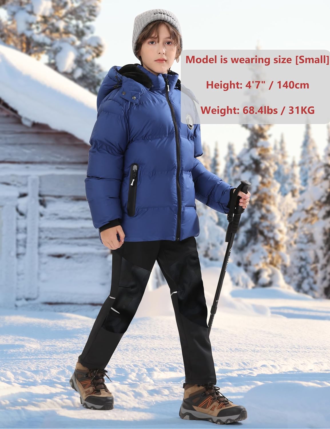Warm Fleece LiningWaterproof & Windproof Ripstop 3D Tailoring KneesZipper PocketsDetachable Hood