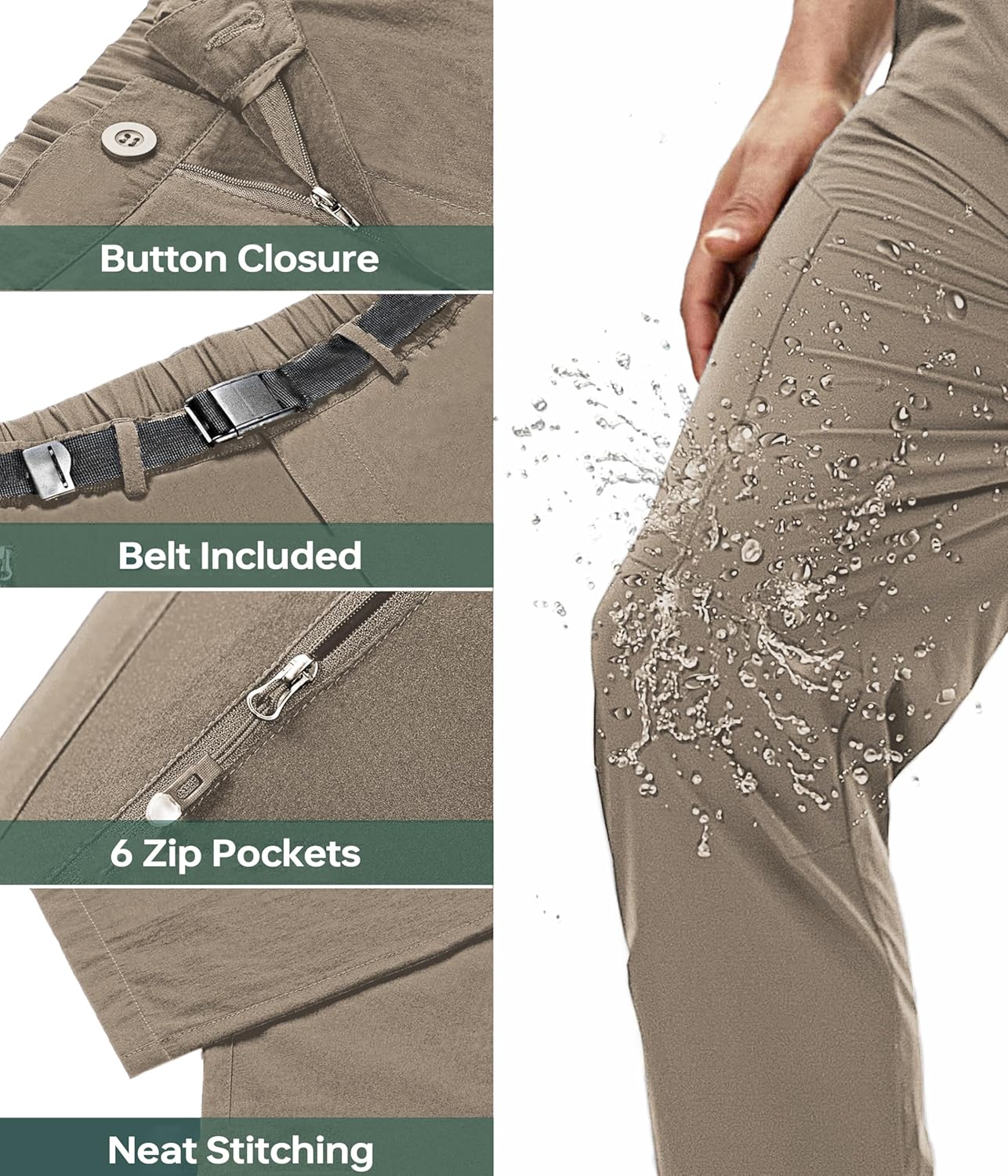 Customers find these hiking pants comfortable, particularly in hot humid weather, and appreciate their lightweight design and good value for money. The fit receives positive feedback, with one customer noting they work well with high-top hiking boots. The material quality and zipper performance receive mixed reviews – while some like the material, others find it too thin, and while the pockets are appreciated, the zippers are described as flimsy. Size accuracy is also mixed, with some finding them perfect while others say they run large.