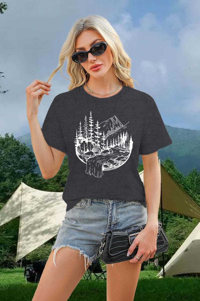Hiking Shirts Women Nature Hiking Camping T-Shirt Mountain Adventure Workout Tee Tops