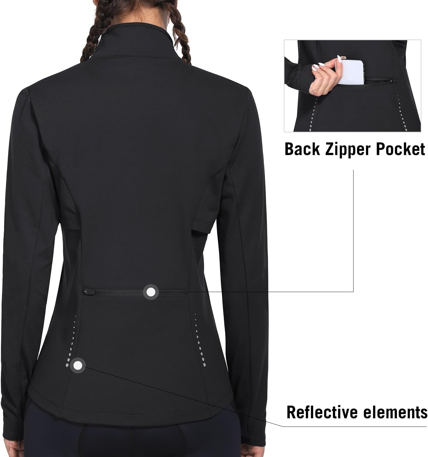 5 Pockets & Reflective Elements: Our fleece lined running jacket with two side pockets, a rear zipper pocket and 2 hidden inner pockets to store your items. Reflective elements for low-light visibility