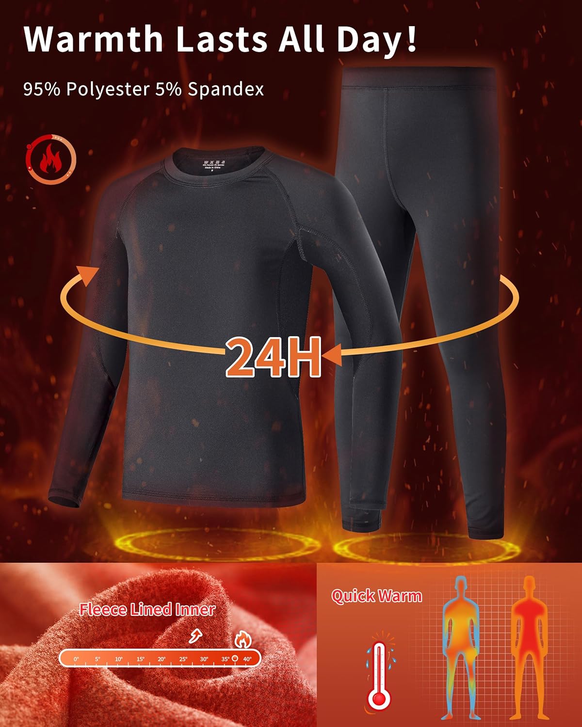 Boys Thermal Underwear Set, Keep Warm, Moinsture-Wicking, Stretchy & Comfortable