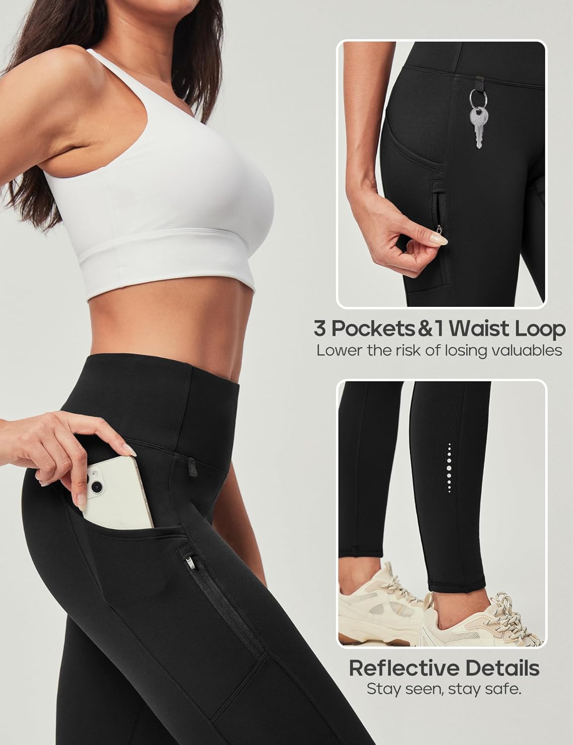 Customers find these leggings snug but not tight, comfortable, and appreciate their warmth, with one customer noting they’re excellent for cold weather running. They receive positive feedback for their quality, pockets, softness, and sheerness, being opaque and not see-through when stretching or bending. Opinions about sizing are mixed, with some finding them perfect while others say they run small.