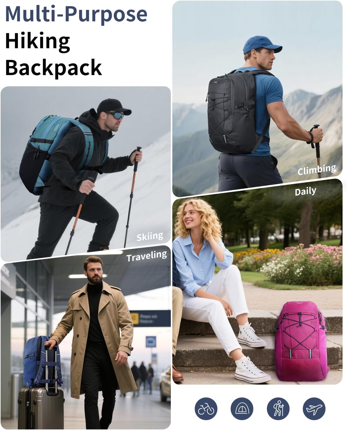 【Multi-purpose Casual Daypack】 Hiking daypack is an ideal companion for casual hiking, day trips, vacations, camping, travel, overnight trips, shopping, family activities and more. It will be the perfect gift for both men and women, whether it is for outdoor sports or daily leisure activities in and around the city