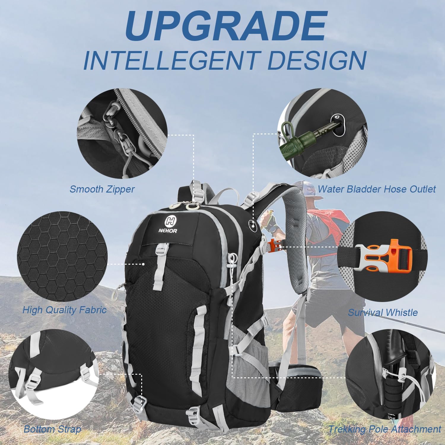 【Premium Comfort & Durability】This 40L hiking backpack uses lightweight 210D rip-resistant nylon fabric with water-resistant coating. The main stress points are reinforced to provide long-lasting durability for everyday use. It’s the one for trekking, hiking, camping and travel.