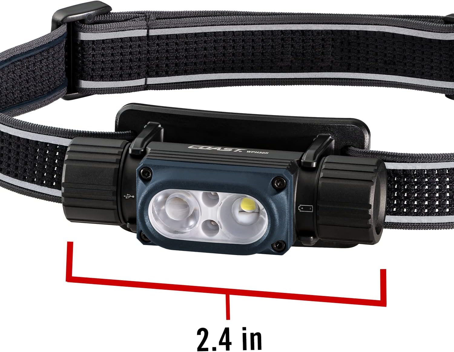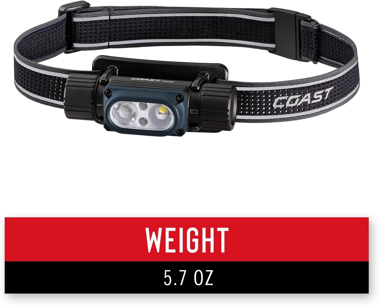 Outmatch the dark with versatile lighting power. As the mid-size do-it-all model in our waterproof headlamp collection, the WPH30R is equal parts high performance and multipurpose. Sealed tight to withstand full submersion, this IP68-built headlamp shines in five output modes spanning three beam colors: white, red, and green. Adding further versatility, the light body rolls in its bracket for directional control but can also detach to become a handheld light, providing illumination that peaks at 1000 lumens with a max beam distance of 160 meters (524 feet). Equipped with the COAST Ultra-Strap—a silicone-lined, non-slip breathable mesh band with an integrated buckle—the WPH30R can be worn, hung, or strapped to structures for lighting convenience. Featuring the COAST Dual Power system, this all-conditions headlamp runs for up to 7.5 hours on a single charge of its COAST ZITHION-X® rechargeable lithium ion battery or can operate on a CR123 disposable lithium battery.