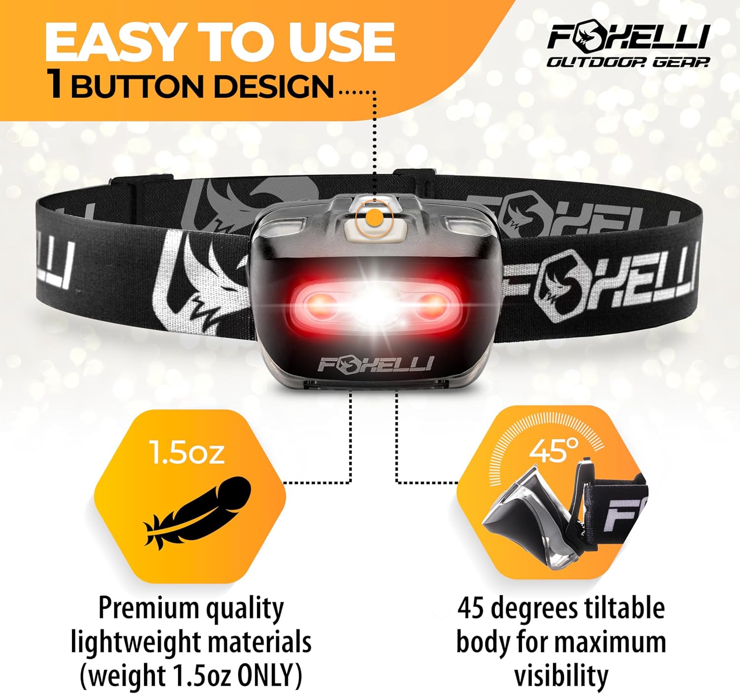 SUPER BRIGHT LED TECHNOLOGY (165 ft beam) – wide variety of white & red modes, all controlled by one glove-friendly button, + 45° tiltable body makes this headlight the brightest and most versatile in its class. SOS and strobe keep you safe in any situation.