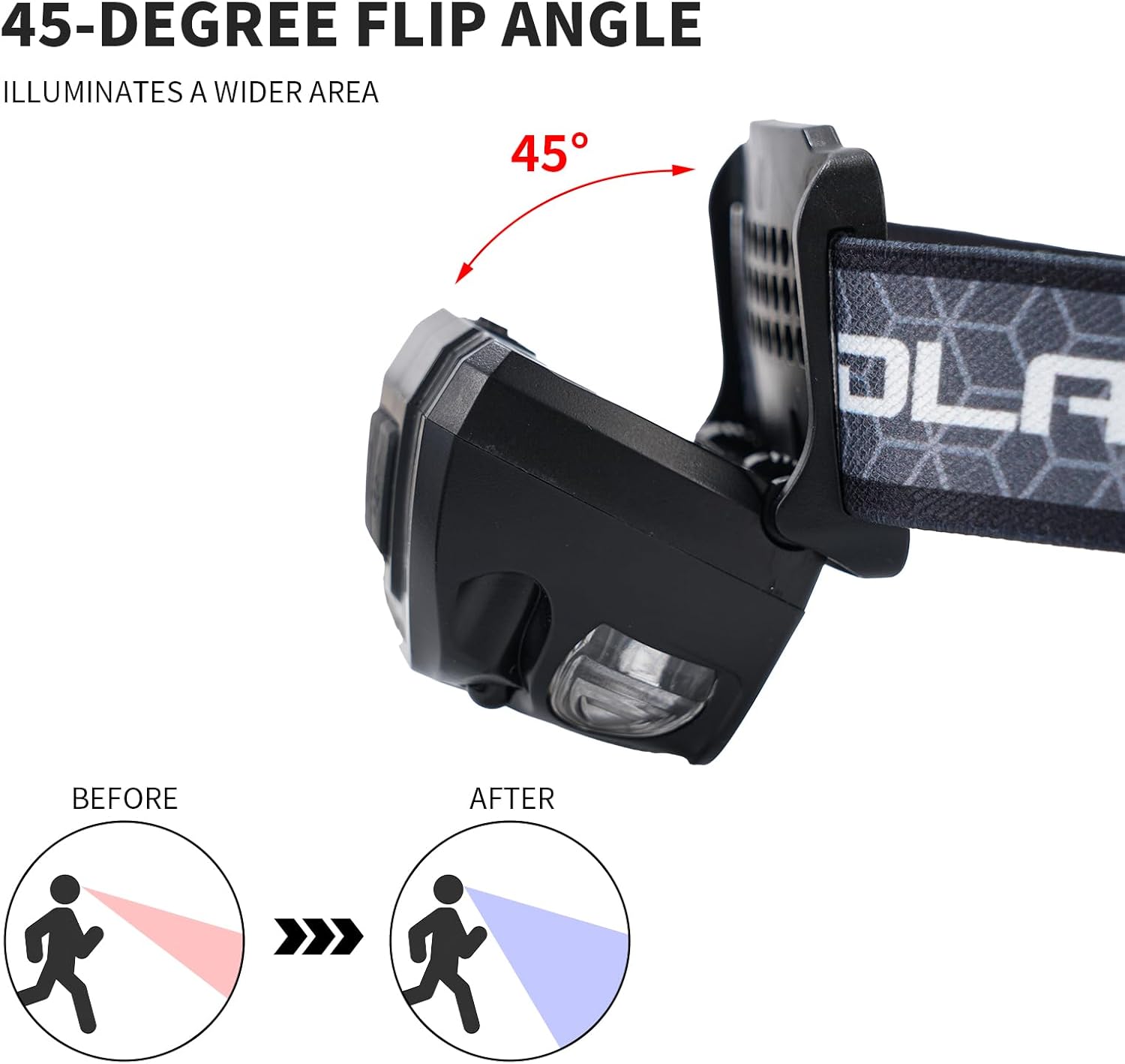 Ultra Light And Adjustable: This Hands Free Headlamp Weighs Only 1.94Ounces (About 55 Grams) And Is Comfortable And Lightweight To Wear, The Lamp Head Can Rotate By 45 Degrees And Is Securely Fixed, So It Won t Wobble Or Slip During Running, The Headlamp Features A Comfortable Elastic Headband That Can Be Easily Adjusted To Fit The Head Size Of Adults And Children Perfectly