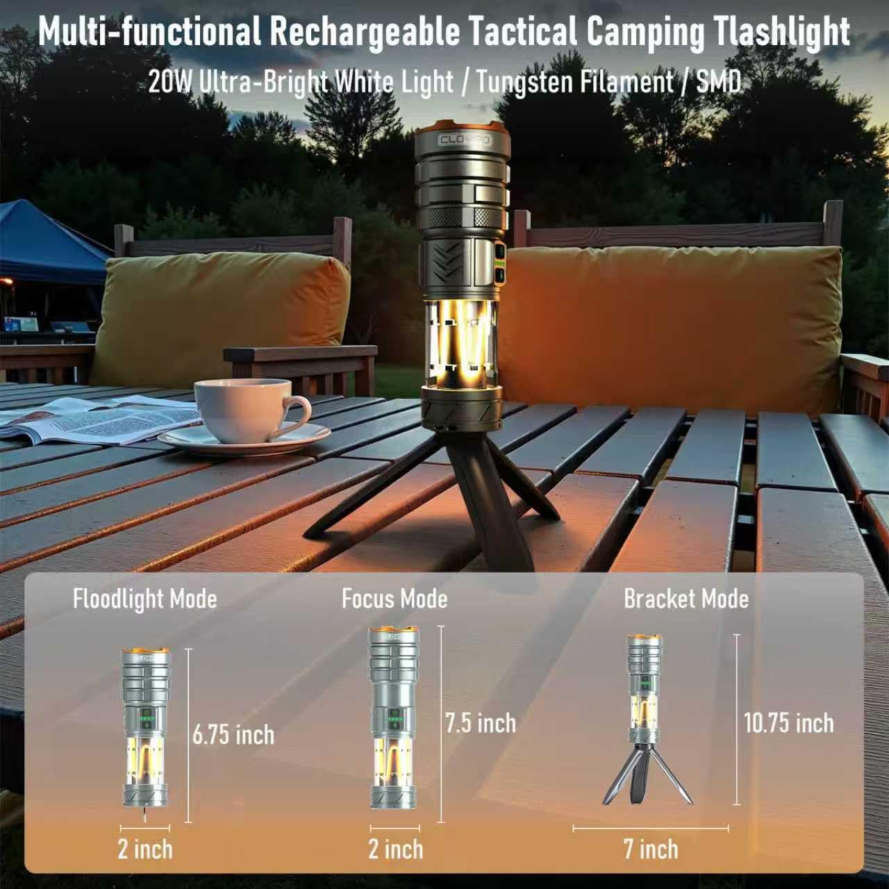 Compact and Portable: Designed with a sleek, compact form factor, this camping tactical flashlight is easy to carry. The tail hook allows for hands-free operation, hanging securely from your backpack, tent, or tree branch. And it is equipped with a triangular bracket that can be attached to the end of the high lumen tactical flashlight, which can provide stable support for the ambient multifunctional camping flashlight, freeing you to let go of your hand at any time.