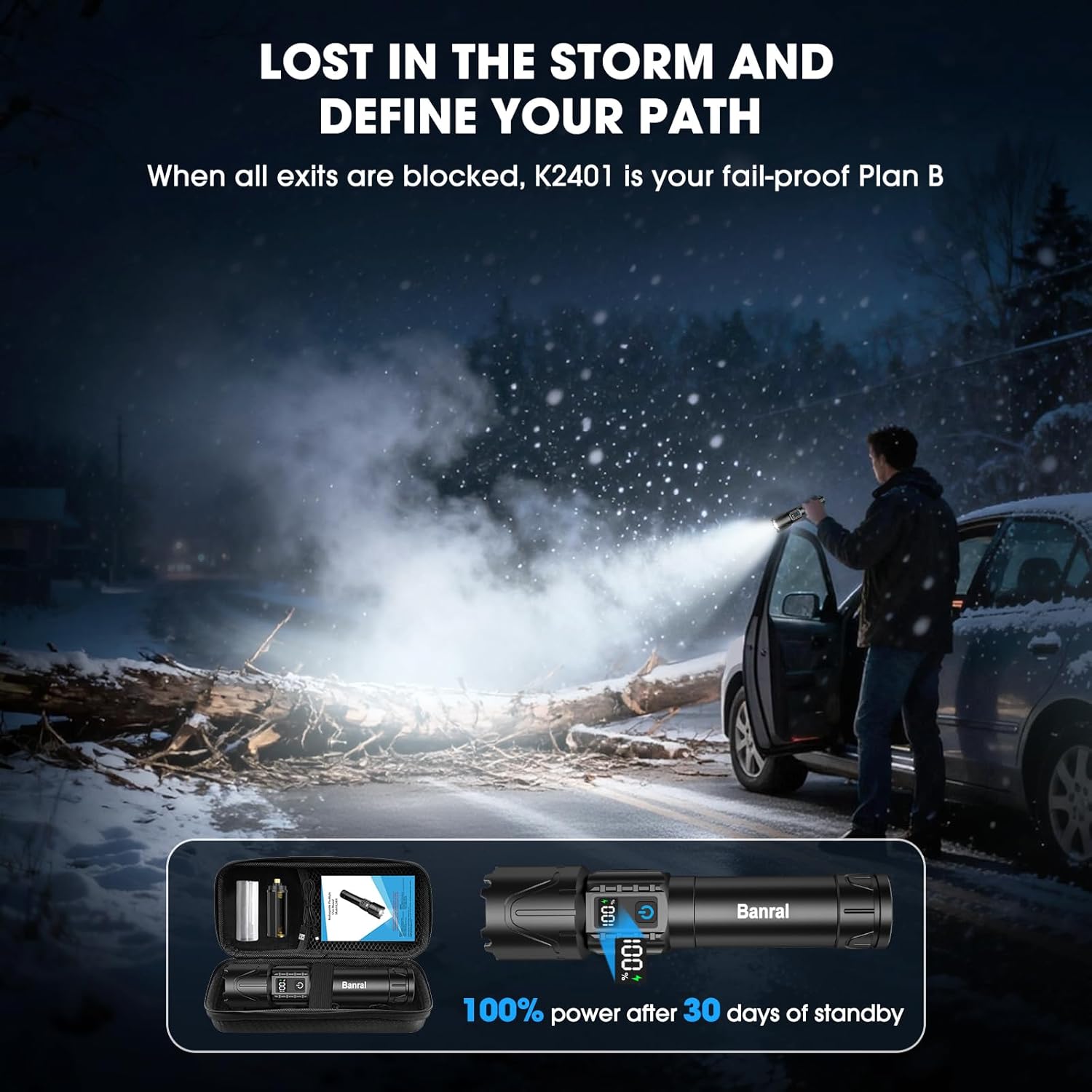 【SUPER BRIGHT FLASHLIGHTS】Banral high lumens tactical flashlights is equipped with Upgraded Long Beam LED Chip, which produces a powerful and focused beam, brighter than car headlights. The ultra-strong beam can easily focus on objects up to 1500 meters away or illuminate the whole room and backyard.