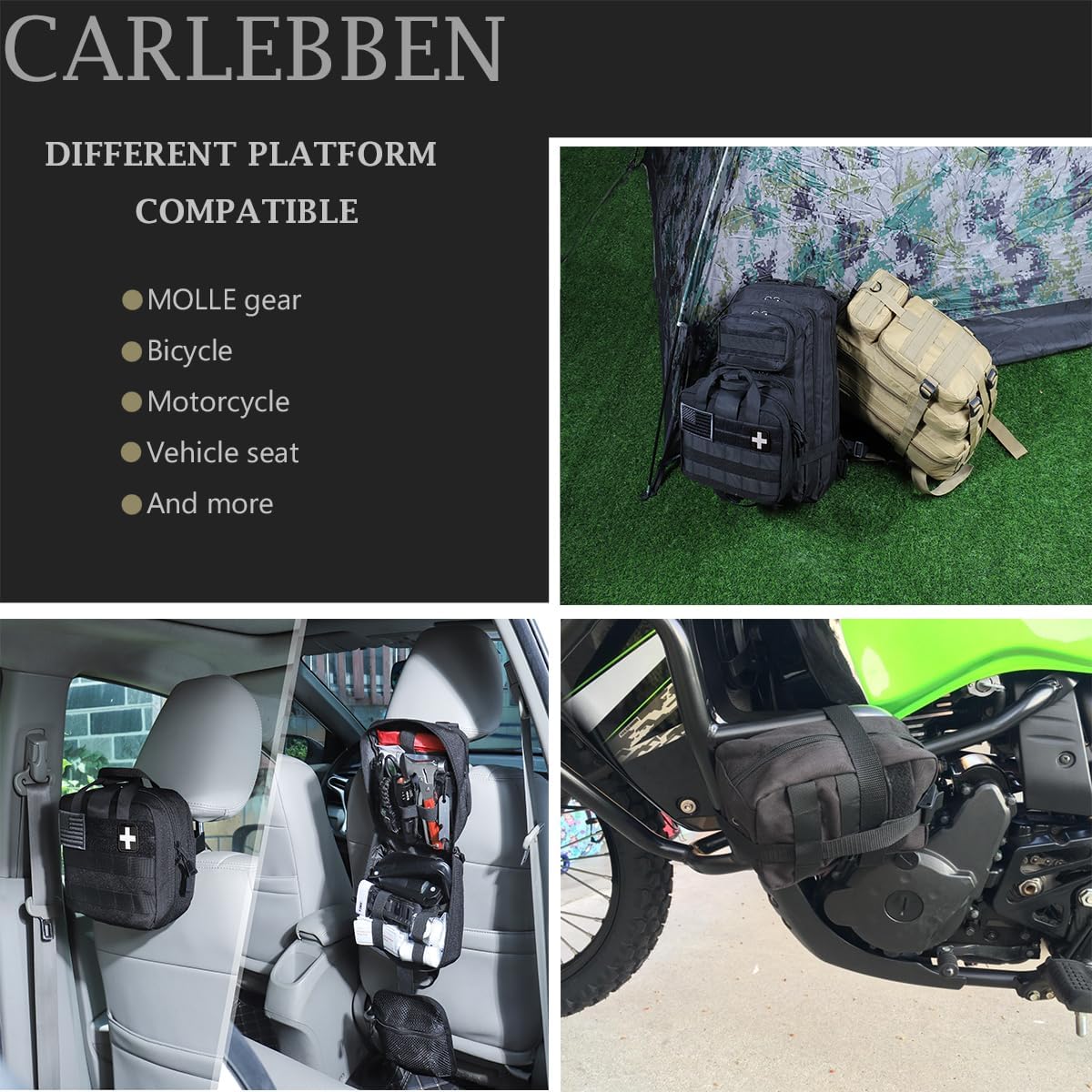 MOLLE SYSTEM: Molle system on the back can attach the kit to any MOLLE compatible gears and also a bicycle, motorcycle, backpack, belt, vehicle seat etc, easy to attach and unfasten