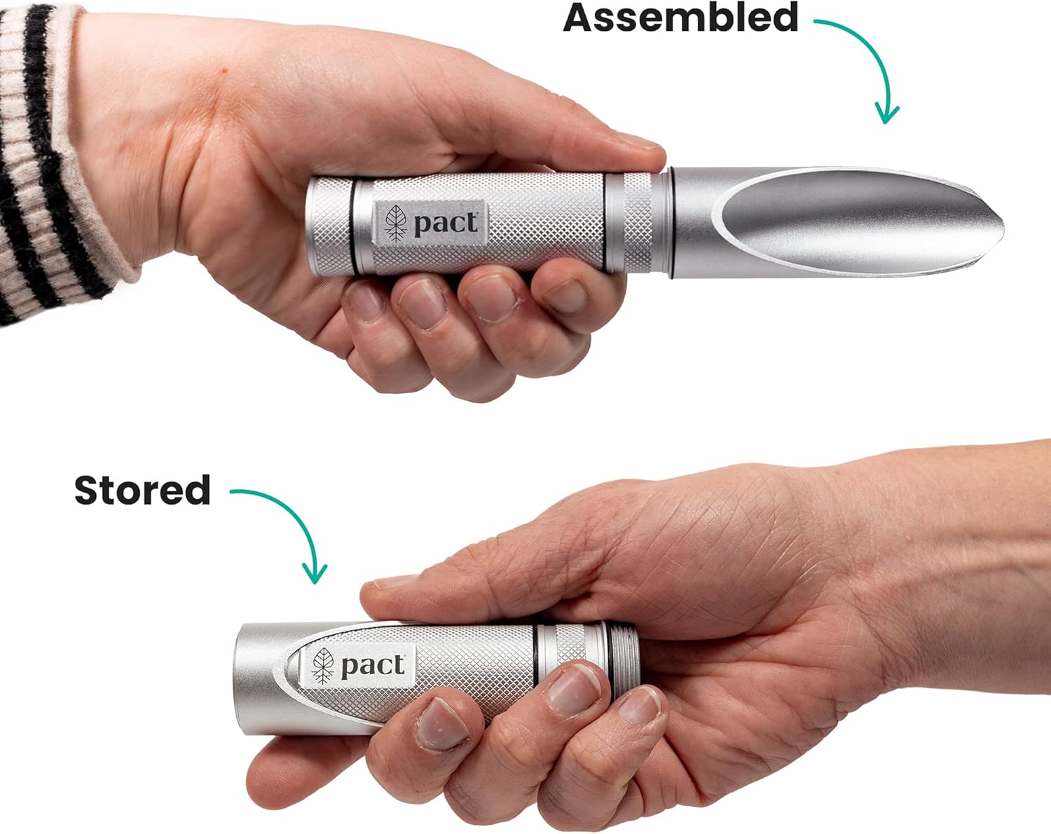 COMPACT: Aluminum shovel blade screws on to the body to make digging a 6-8″ hole to bury your waste fast and easy. After use, blade can be unscrewed and stored on the body of the shovel to minimize size. PACT Wipes and Tabs are stored inside the handle of the shovel. Fits in waste belts, fanny packs, running vests and standard backpacks.